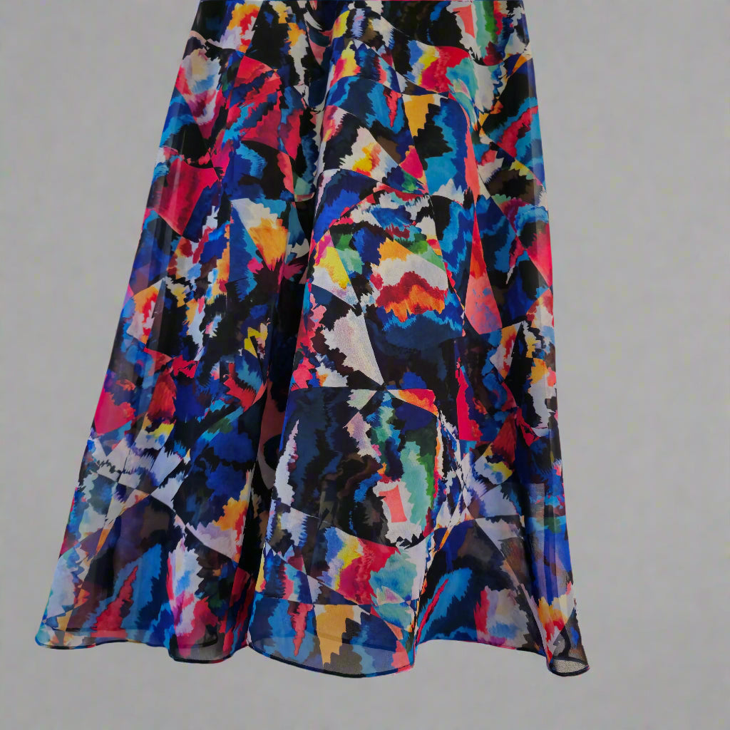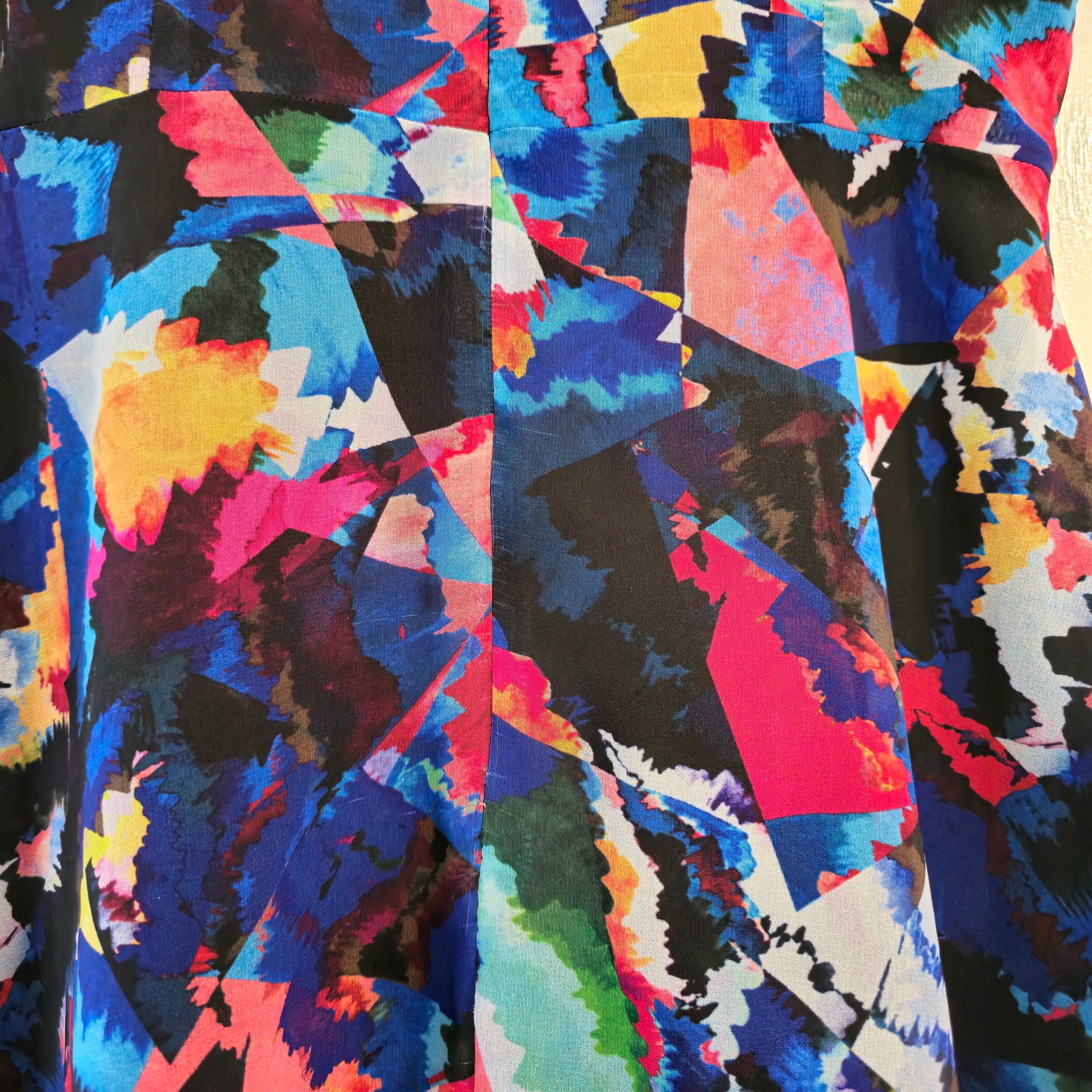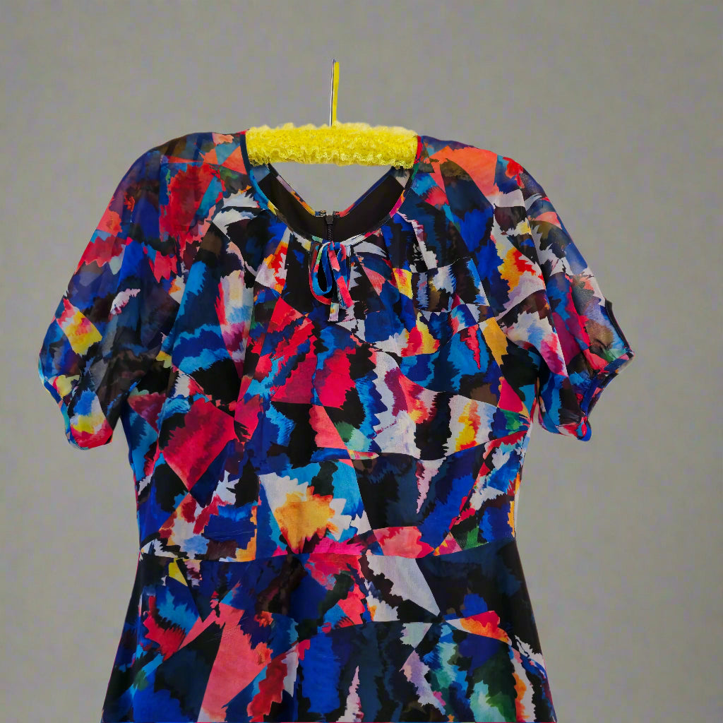 A vibrant, artistic piece by Anthea Crawford that exudes sophistication and playfulness. This dress is perfect for both daytime events and semi-formal evenings.