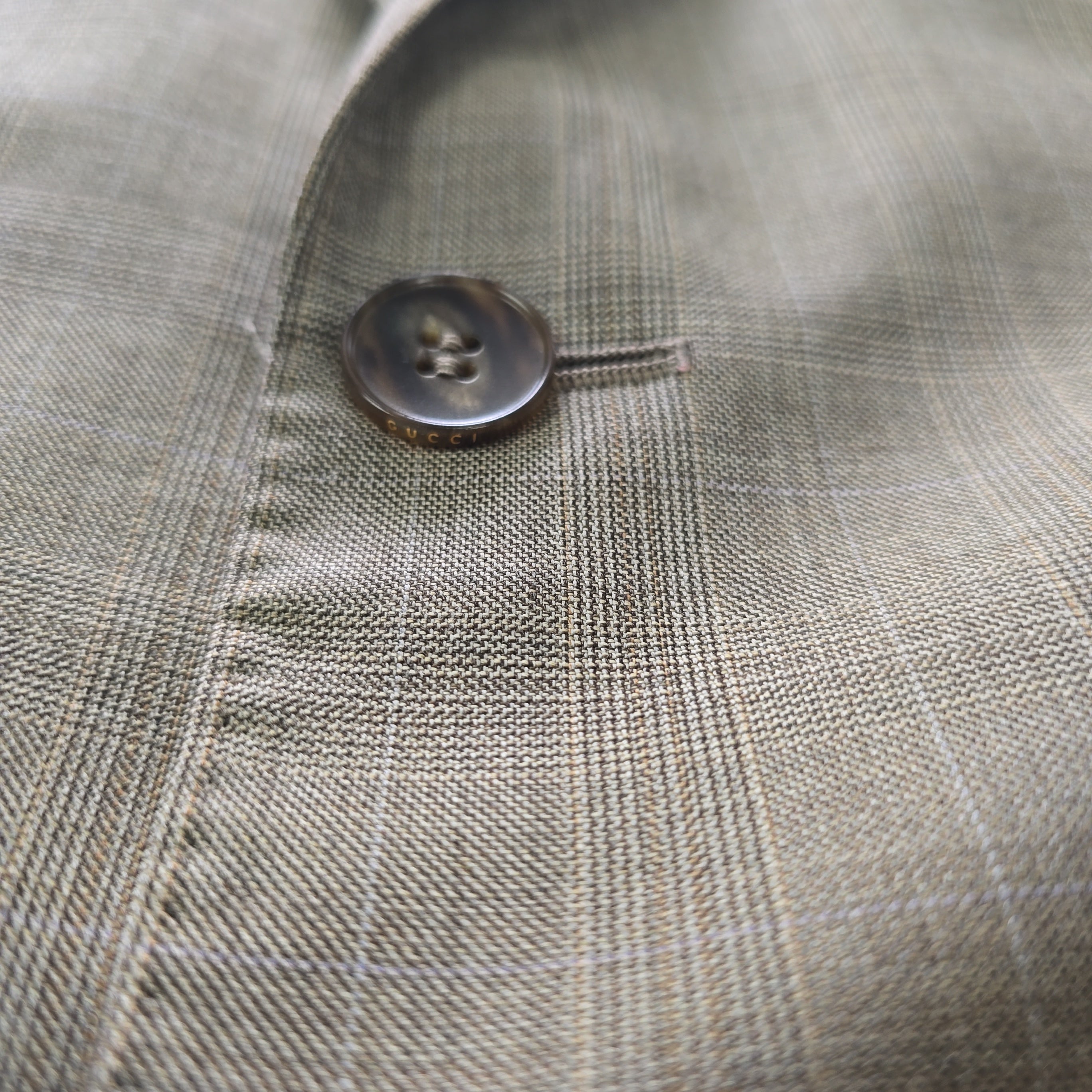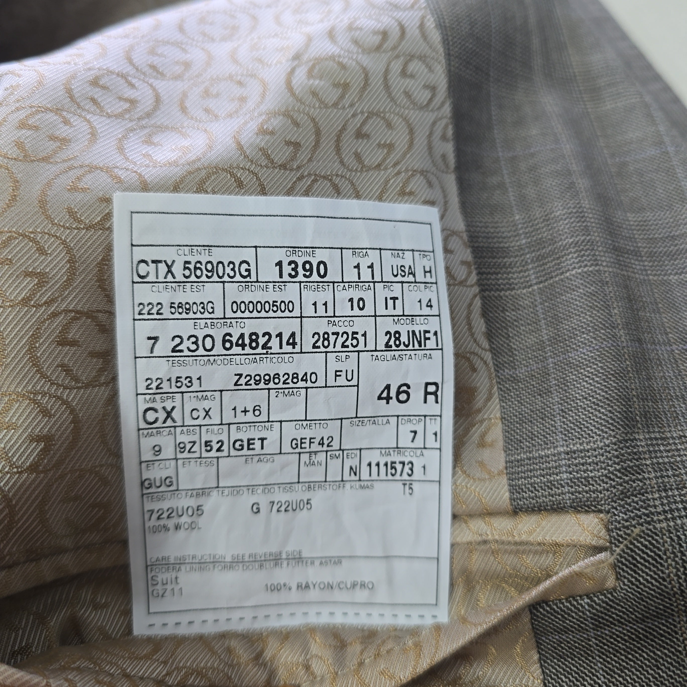 Details: Includes shoulder pads, GG monogram lining, internal & external pockets, replacement buttons.