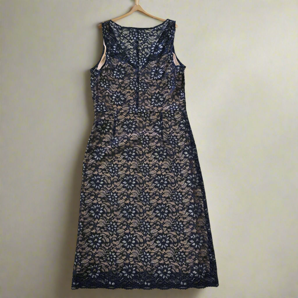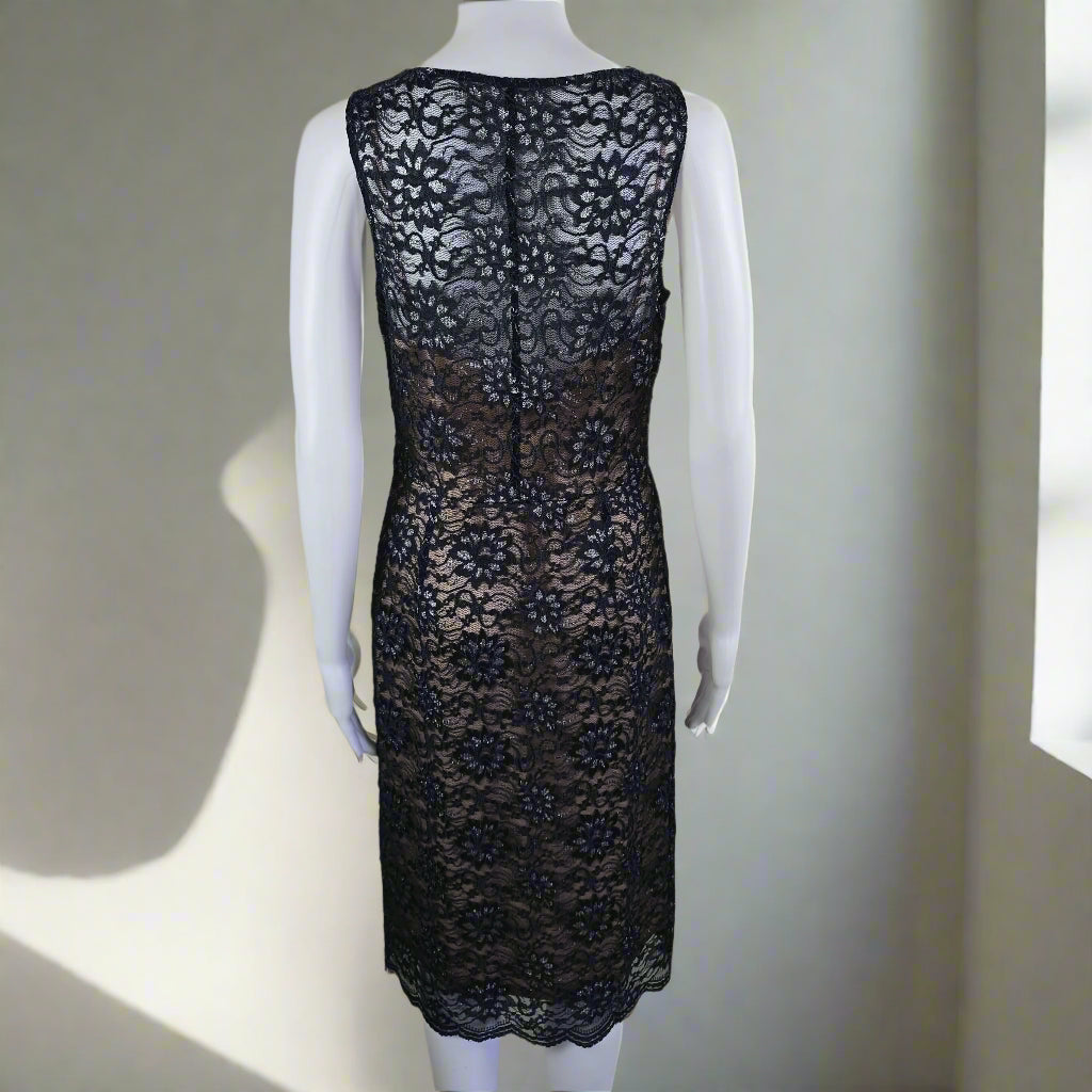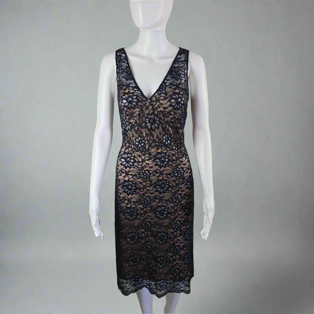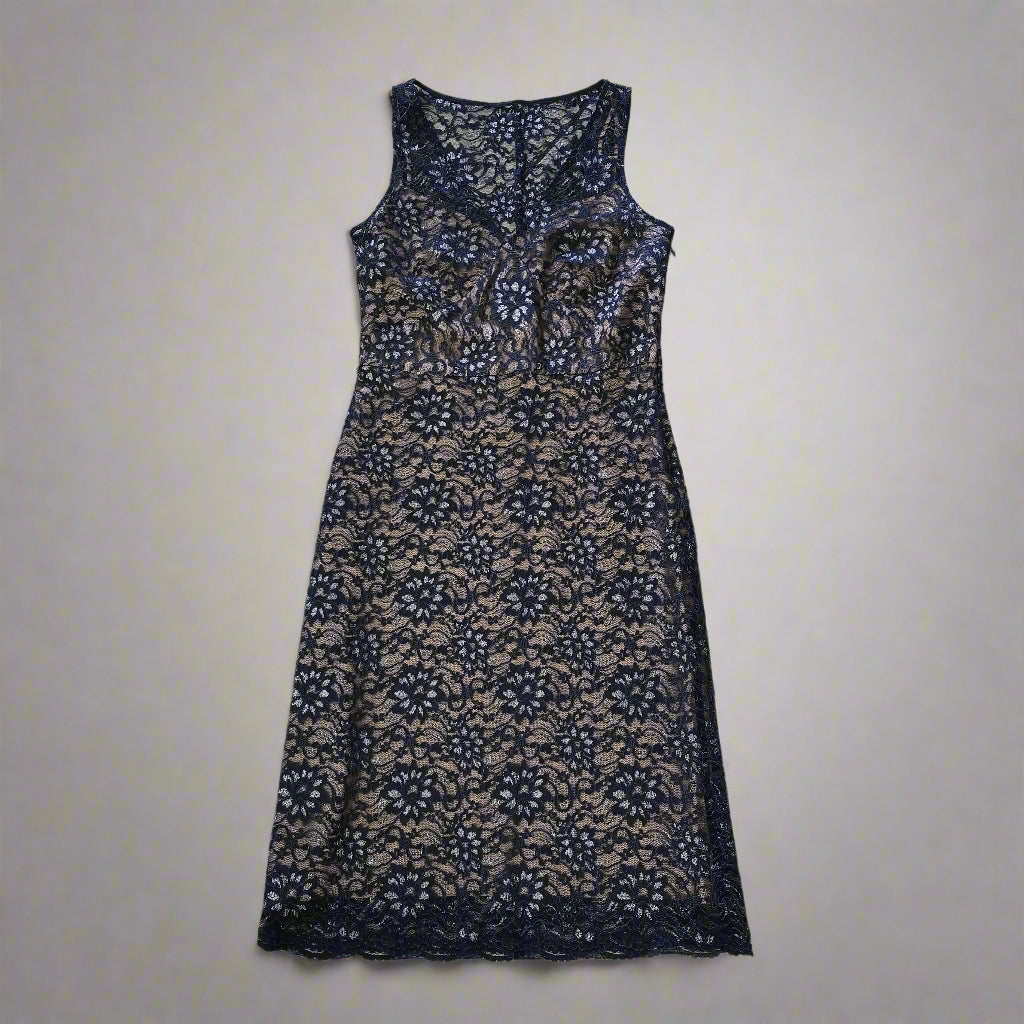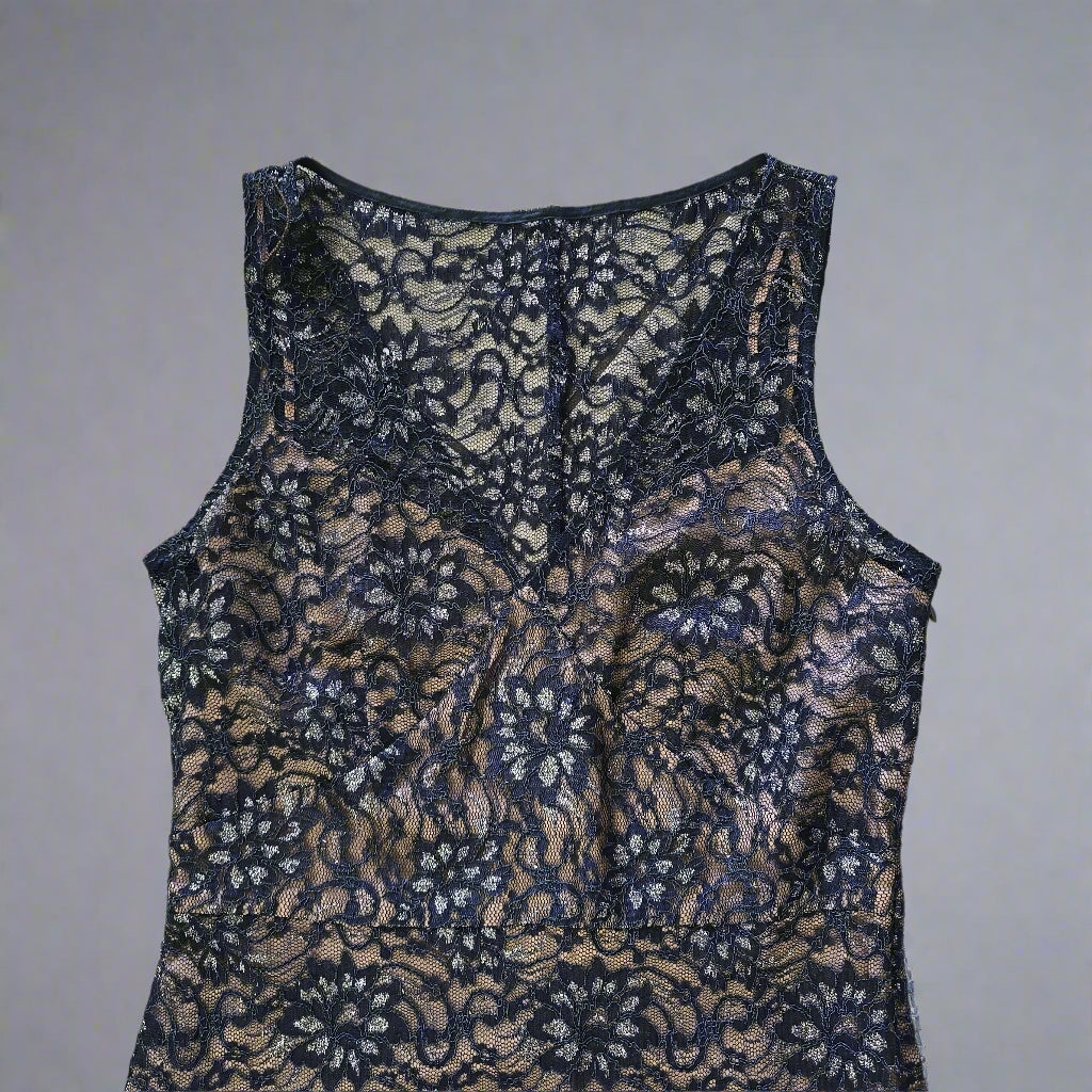 BCBG Max Azria Navy & Silver Lace Overlay Dress – Size AU 10 / UK 10 / FR 38 / US 6 / IT 42
