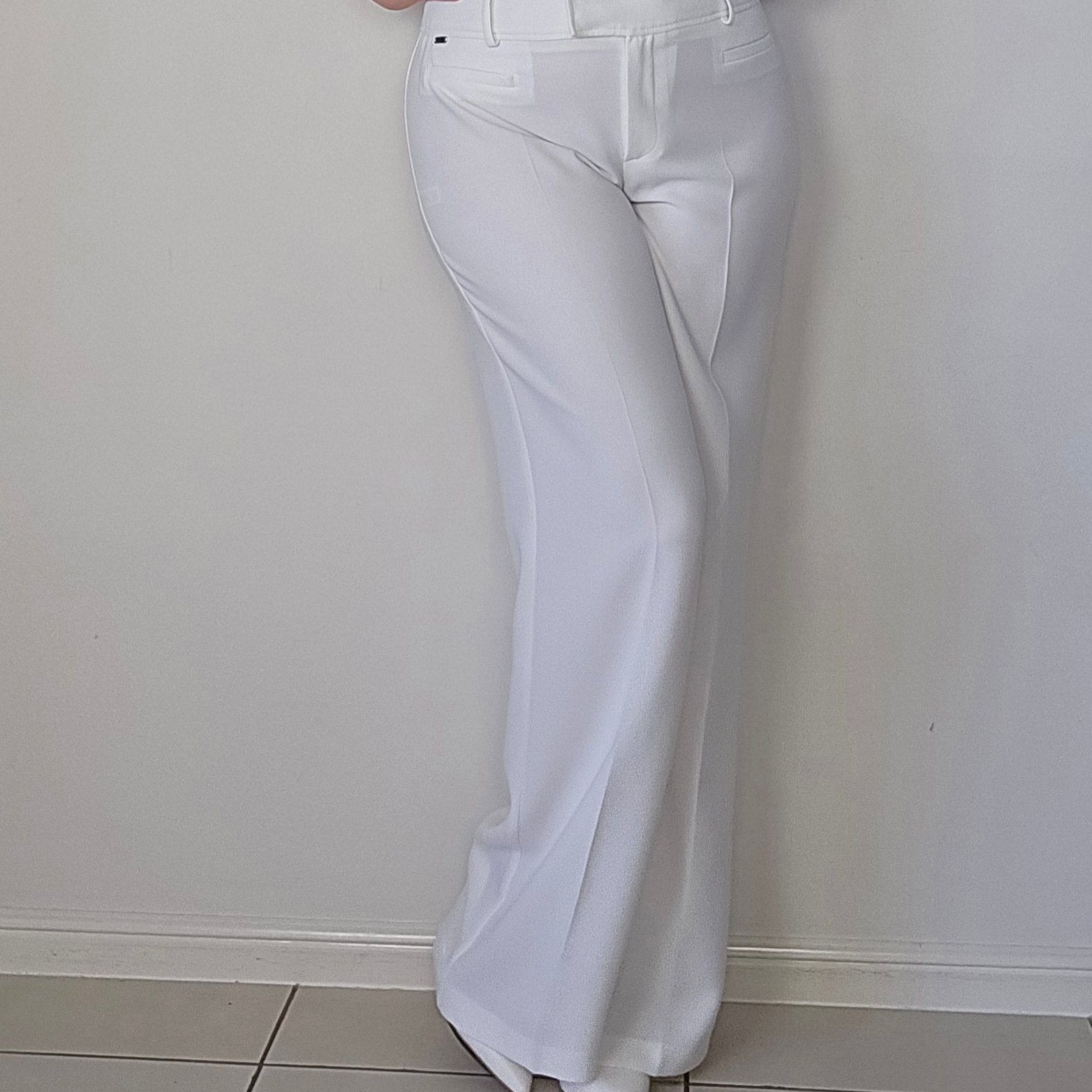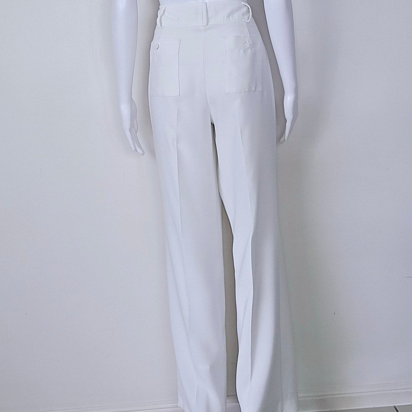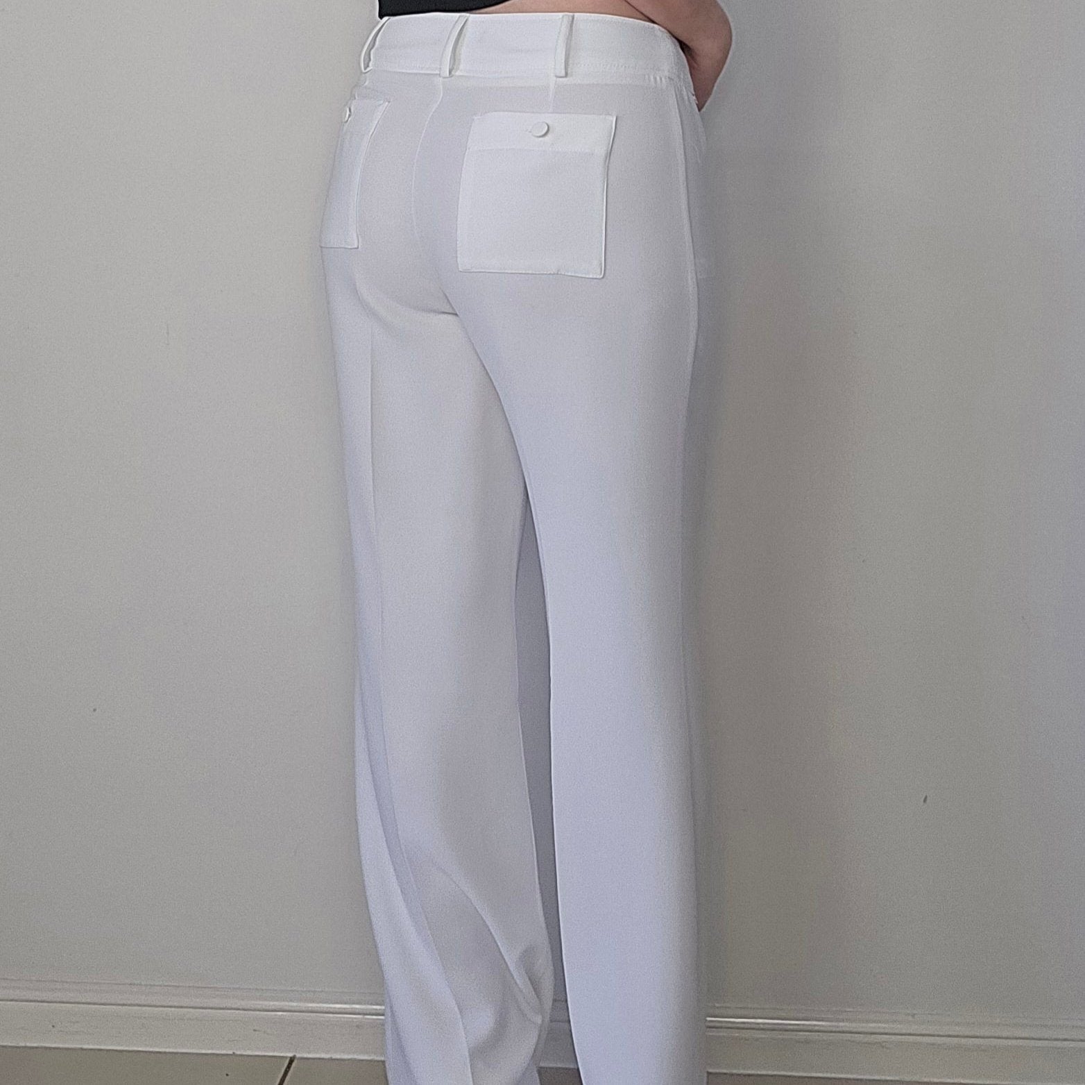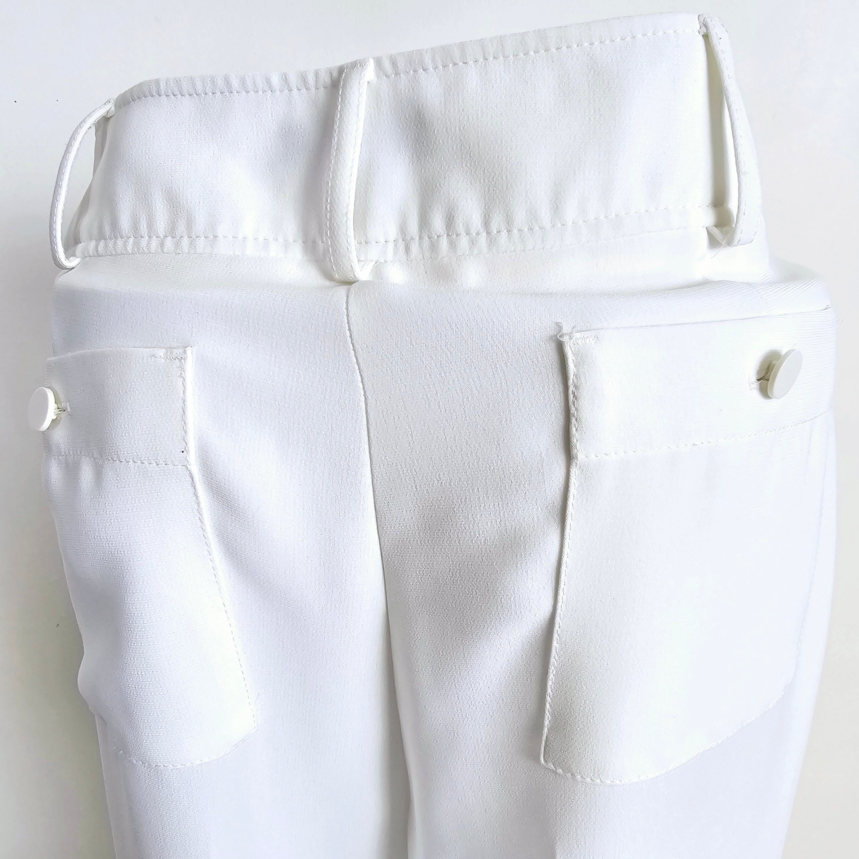 Elevate your wardrobe with these timeless White Dress Pants by Daniel Hechter. Crafted from high-quality 100% polyester, these pants offer both style and comfort. The straight cut design ensures a beautiful drape over your hips and down your legs, flattering your silhouette effortlessly. Featuring a concealed zipper and button closure at the front, along with faux pockets on each side, these pants exude sleek sophistication. Complete with waistband hooks for a belt and real pockets at the back fastened by two white buttons, they combine style with practicality seamlessly. Versatile and elegant, these dress pants are perfect for both formal and casual occasions. Make a statement with Daniel Hechter's signature blend of timeless elegance and modern sophistication.