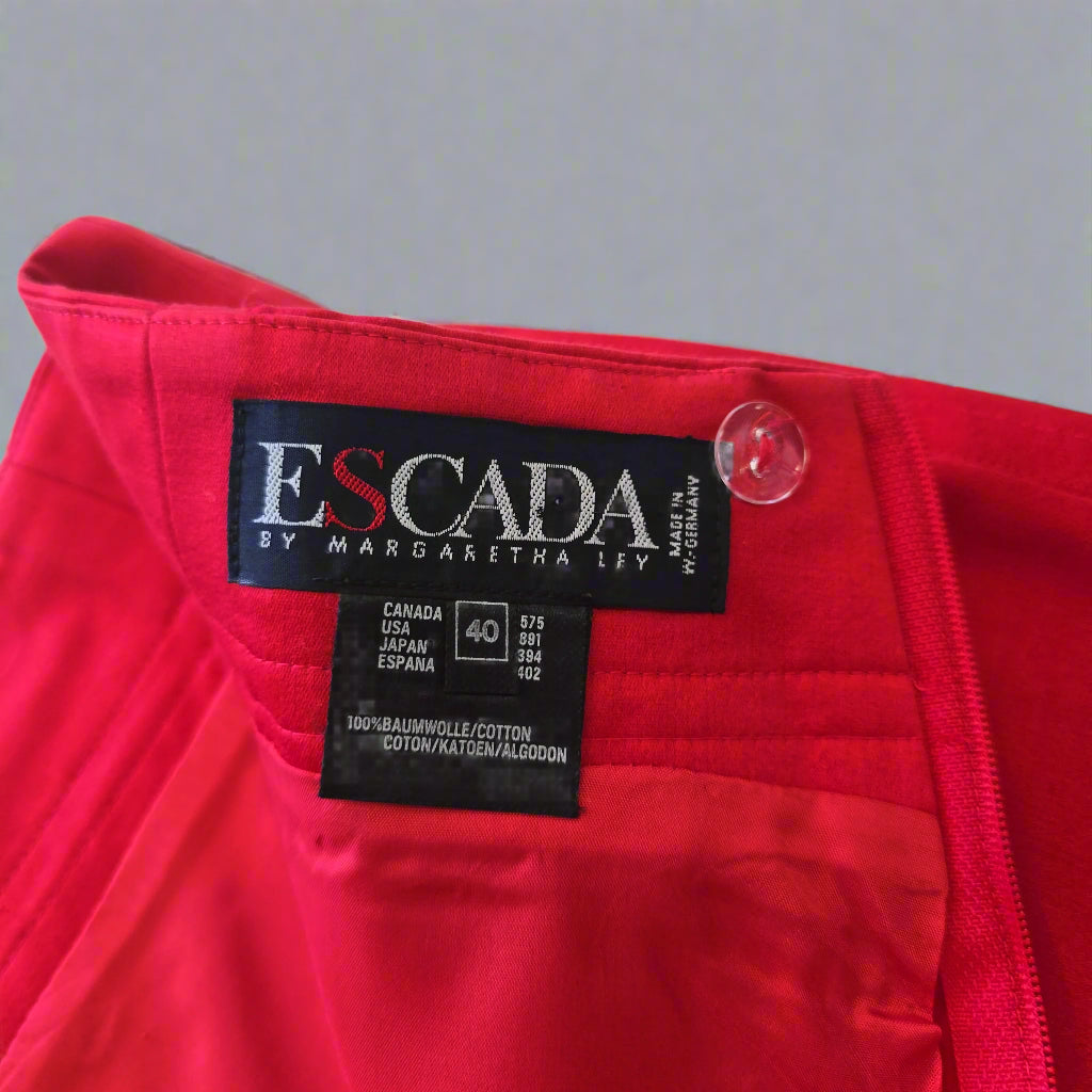 Turn heads with this stunning red skirt from ESCADA by Margaretha LFY, a perfect blend of timeless elegance and a flattering fit. Whether for the office, an elegant dinner, or a stylish day out, this piece is versatile and sophisticated.