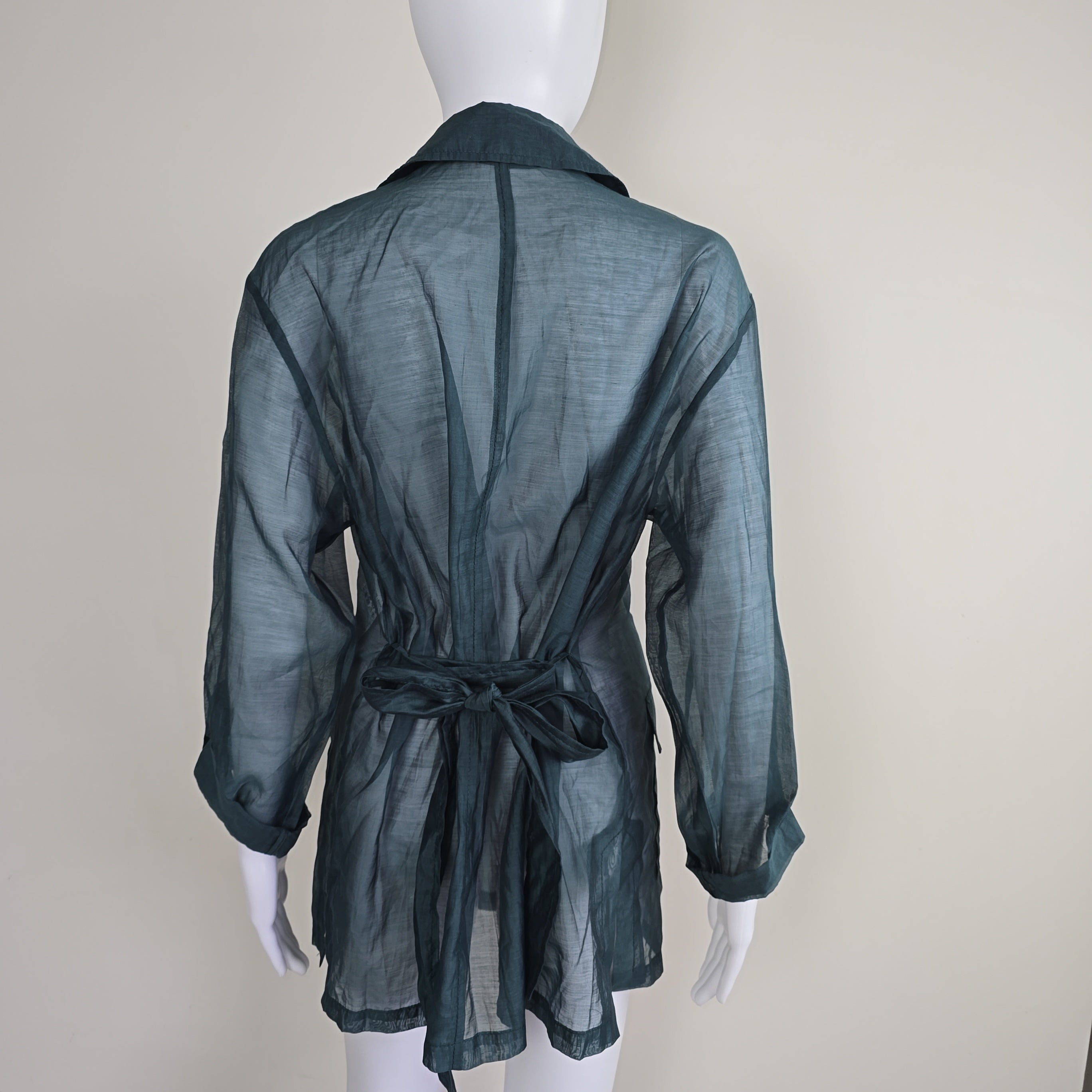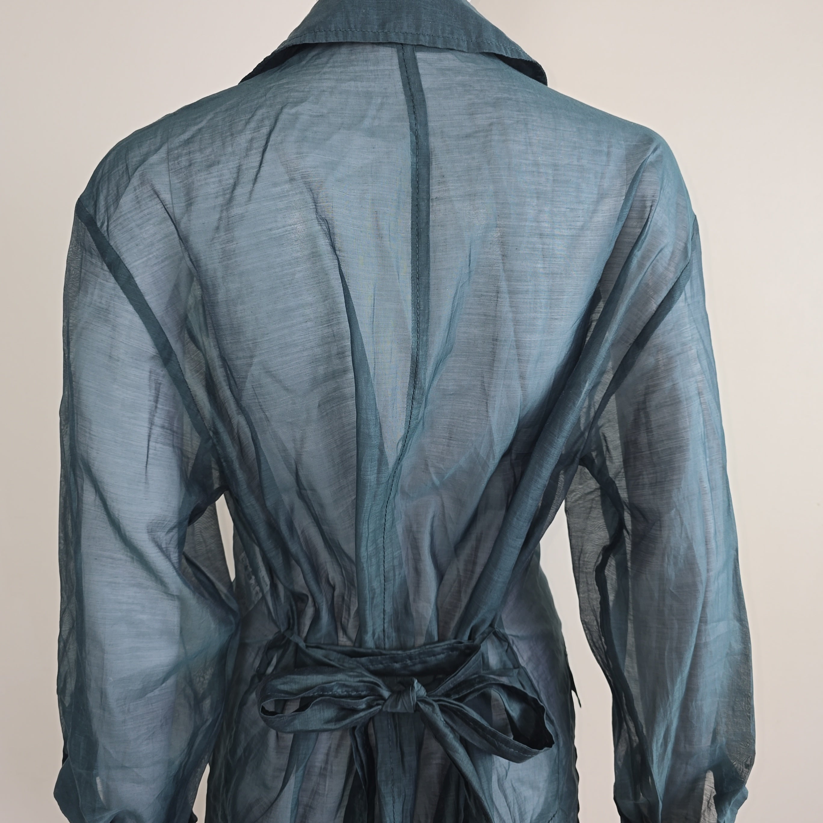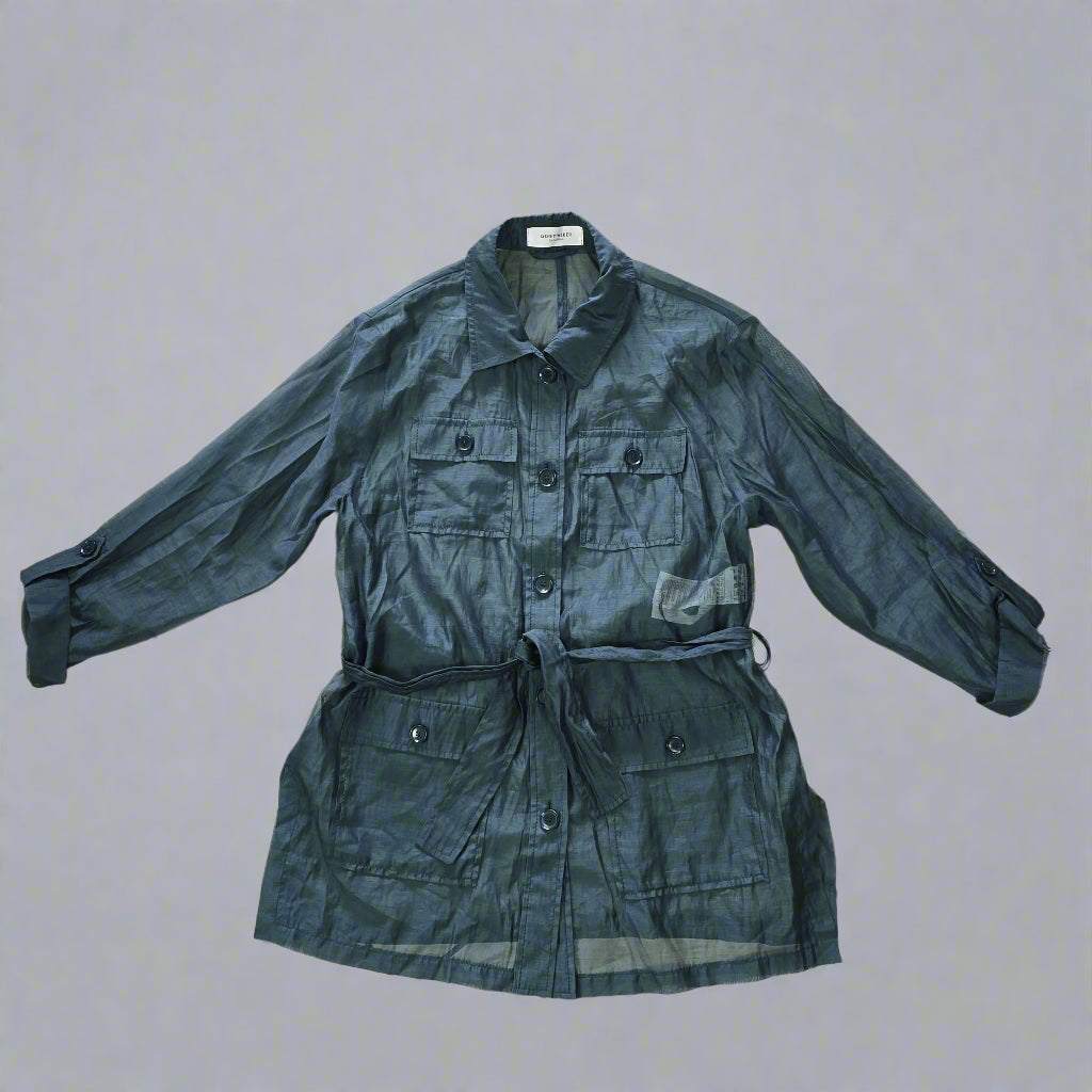 Say hello to your new layering essential. This sheer green shirt from Gerry Weber combines utility with elegance—crafted in a lightweight, subtly shimmering fabric that catches the light in all the right ways. Featuring four patch pockets, a tie waist for shape, and roll-tab sleeves for styling versatility, it’s the piece that does it all.