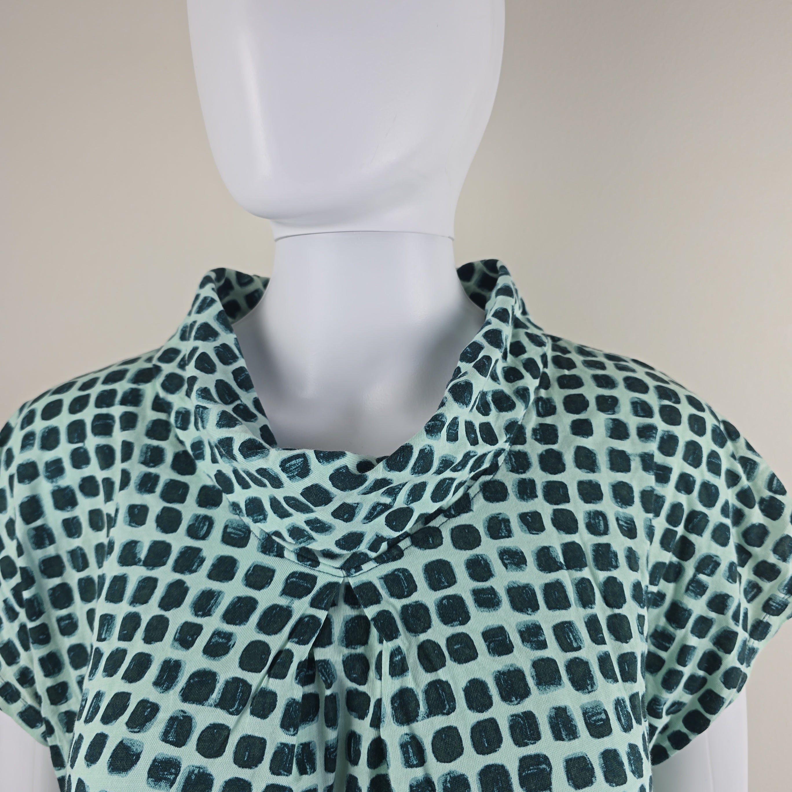 Design: Relaxed silhouette with soft drape and a flattering cowl neckline