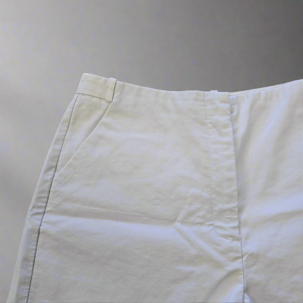 Timeless and endlessly versatile, these crisp white tailored shorts are a wardrobe essential. Crafted from a high-quality cotton blend with added stretch, they offer a structured yet comfortable fit. The clean silhouette is elevated by a flat front design and discreet side pockets, perfect for achieving a polished yet effortless look.