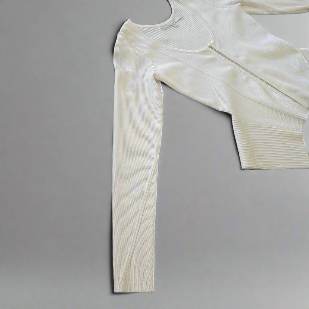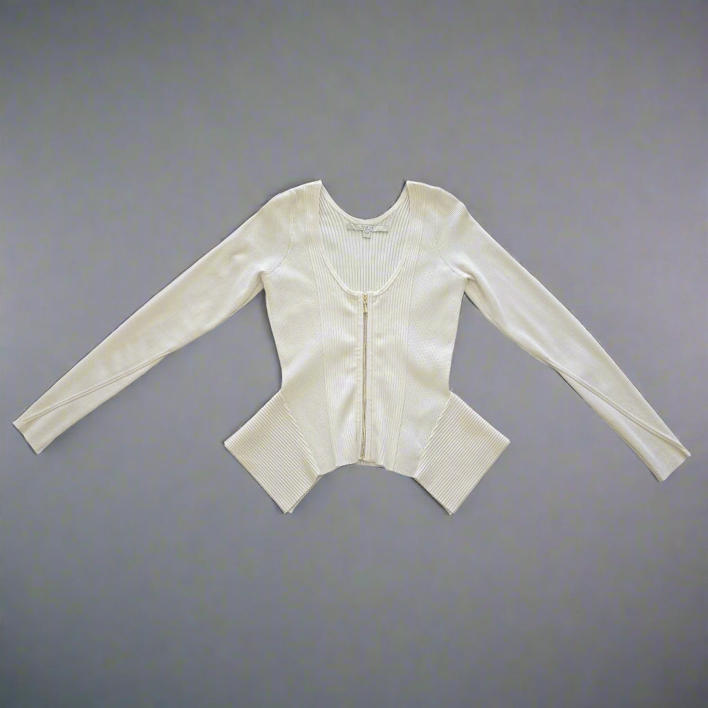 Guess Cream Zip-Up Long-Sleeved Top – Curated from Singapore!