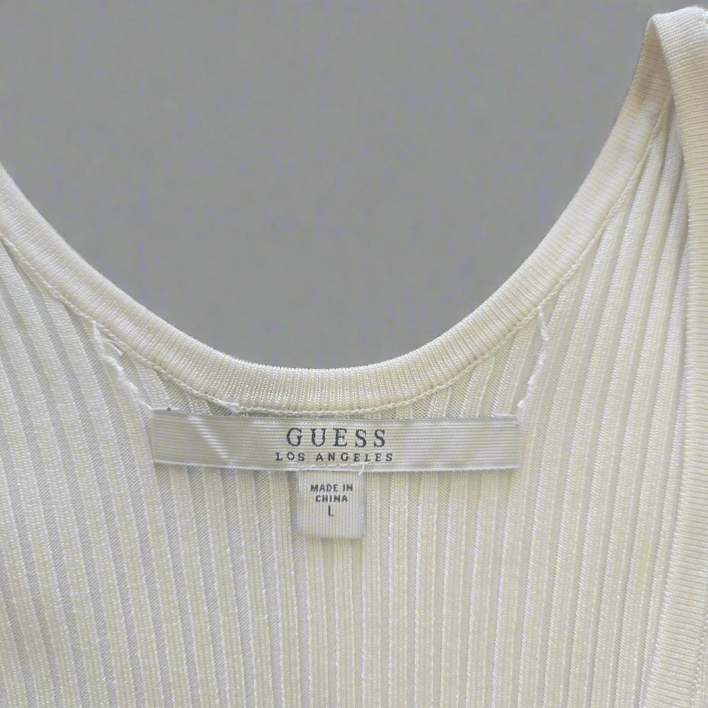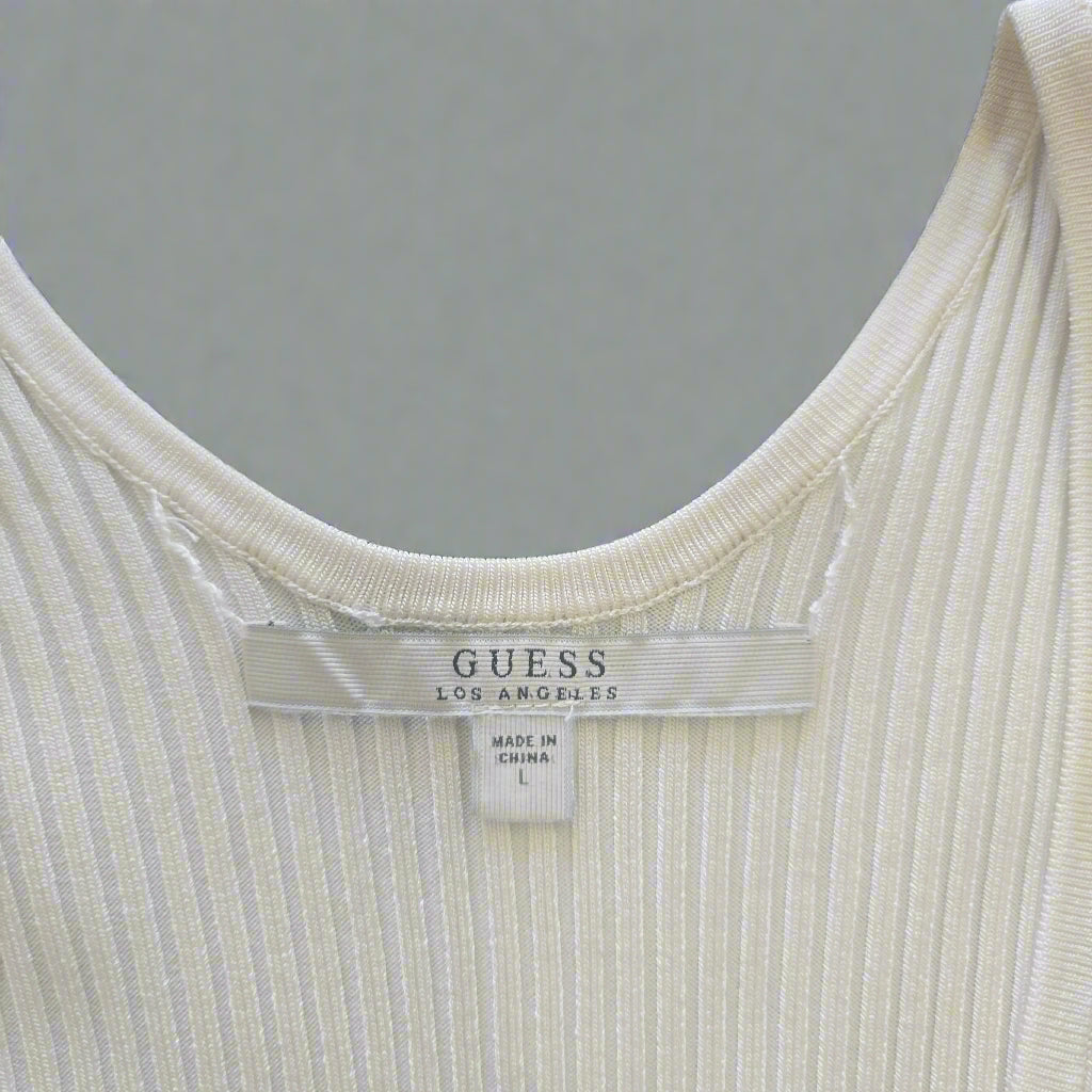 Elevate your wardrobe with this effortlessly chic Guess Cream Zip-Up Top, a perfect fusion of style and comfort.