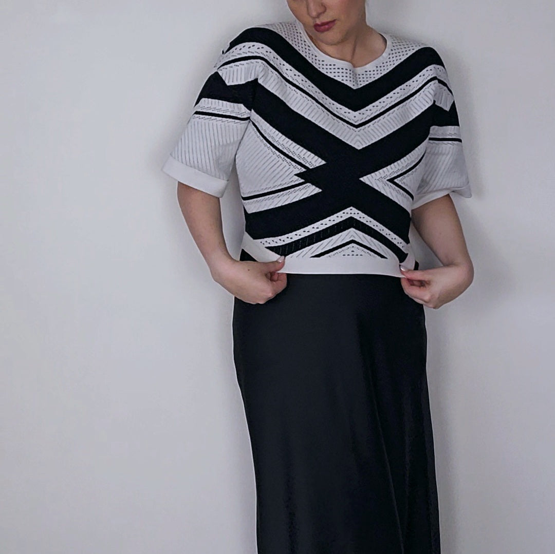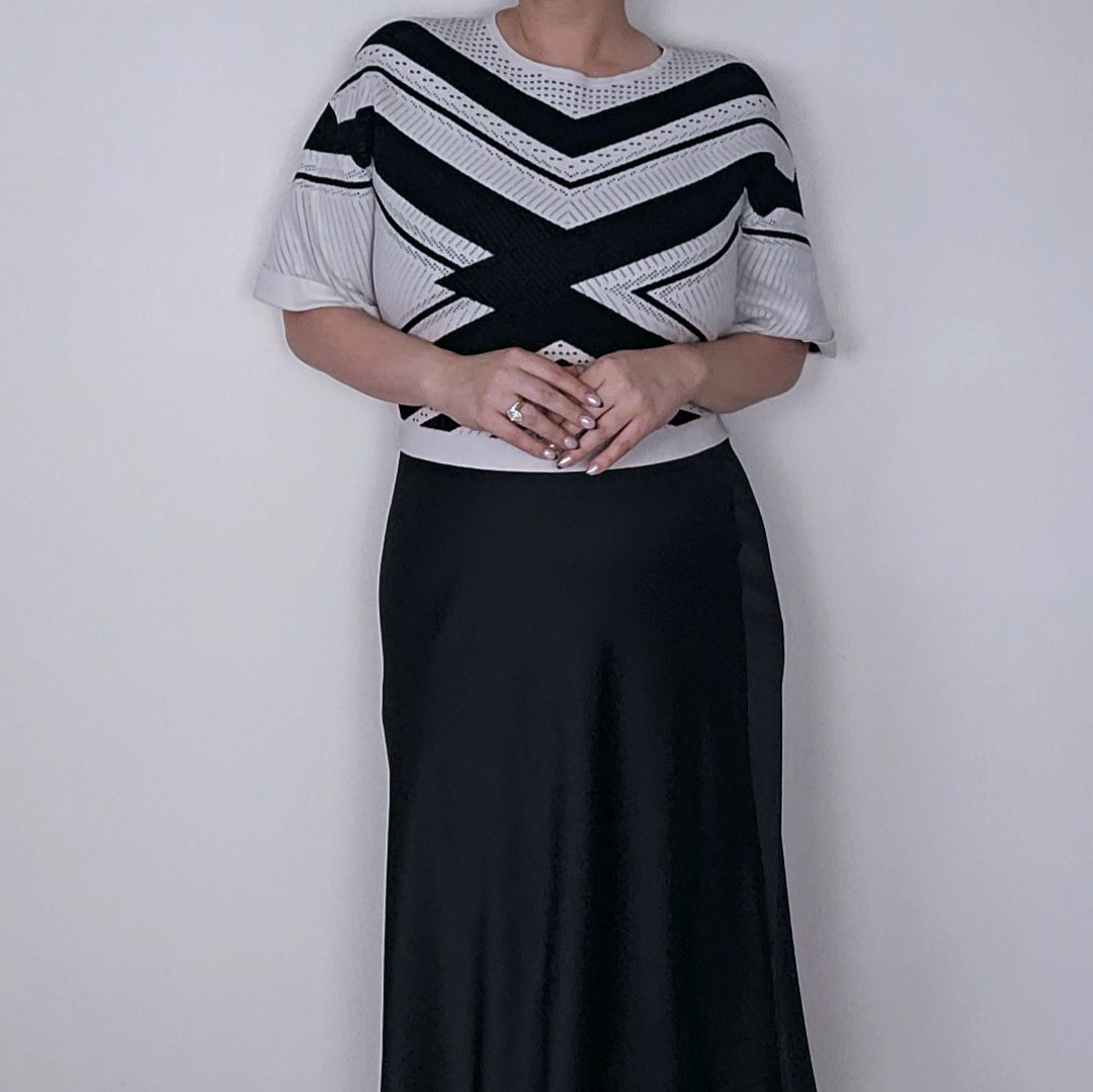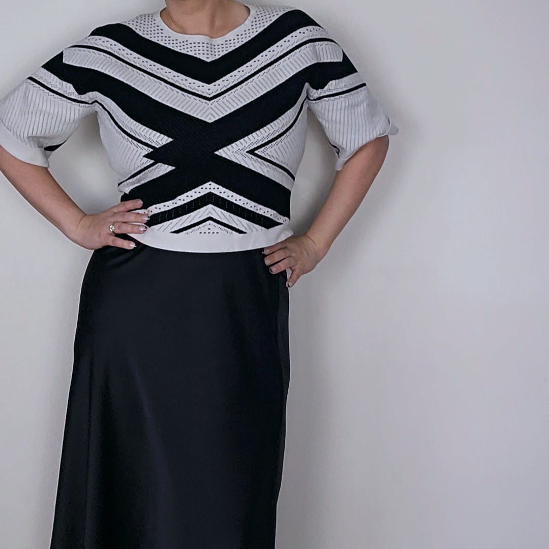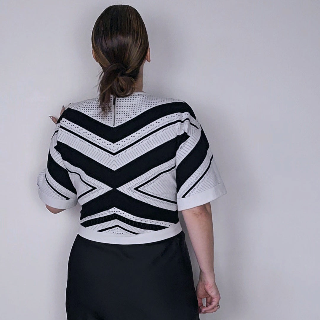 Karen Millen Black & White Chevron Knit Top – Effortless Style Meets Everyday Comfort