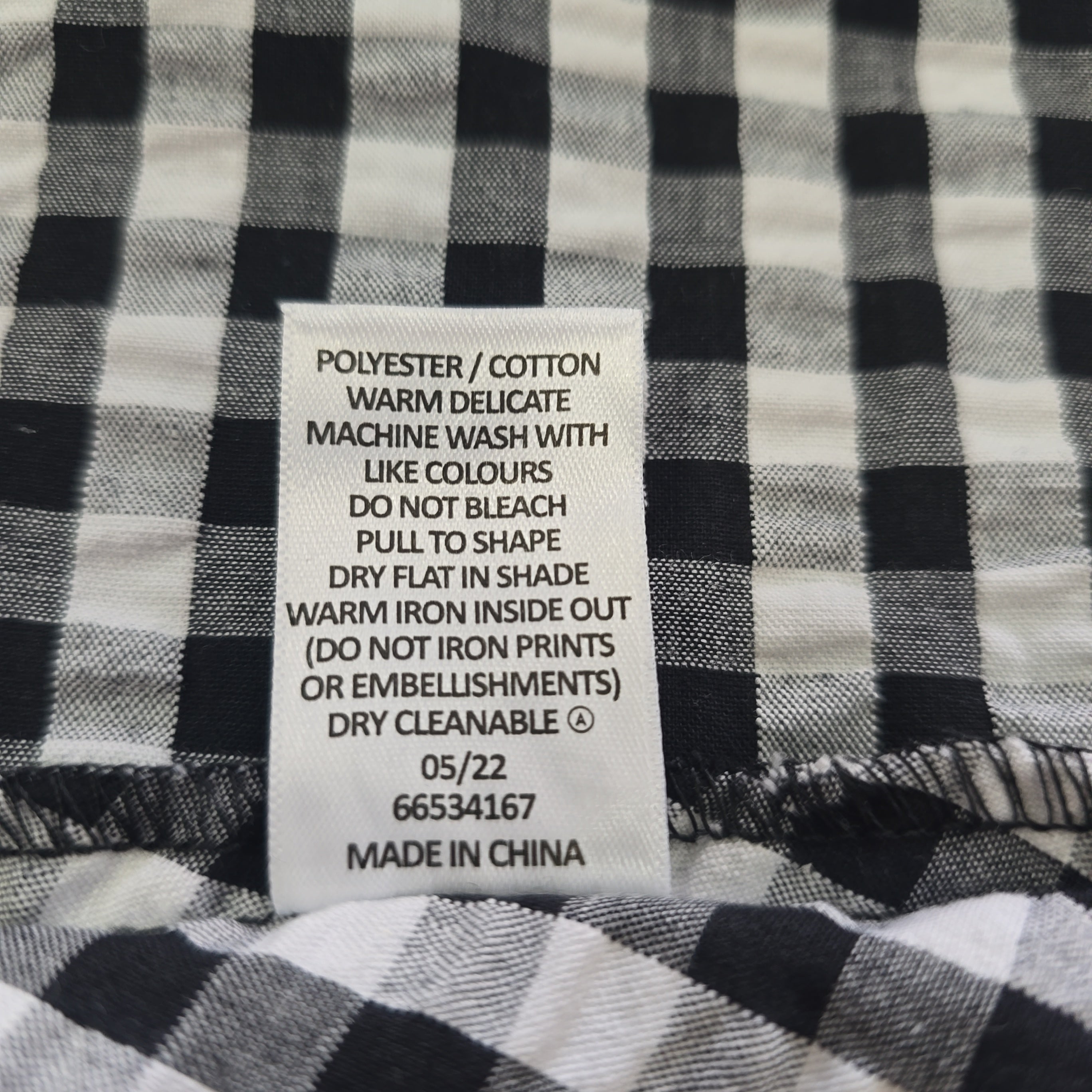 Crafted from a breathable cotton-poly blend, it’s unlined and designed to flow — making it ideal for balmy summer afternoons or layered with knits and stockings when the air cools. The checkered print nods to the now-iconic GAP gingham dress, but stands gracefully on its own.