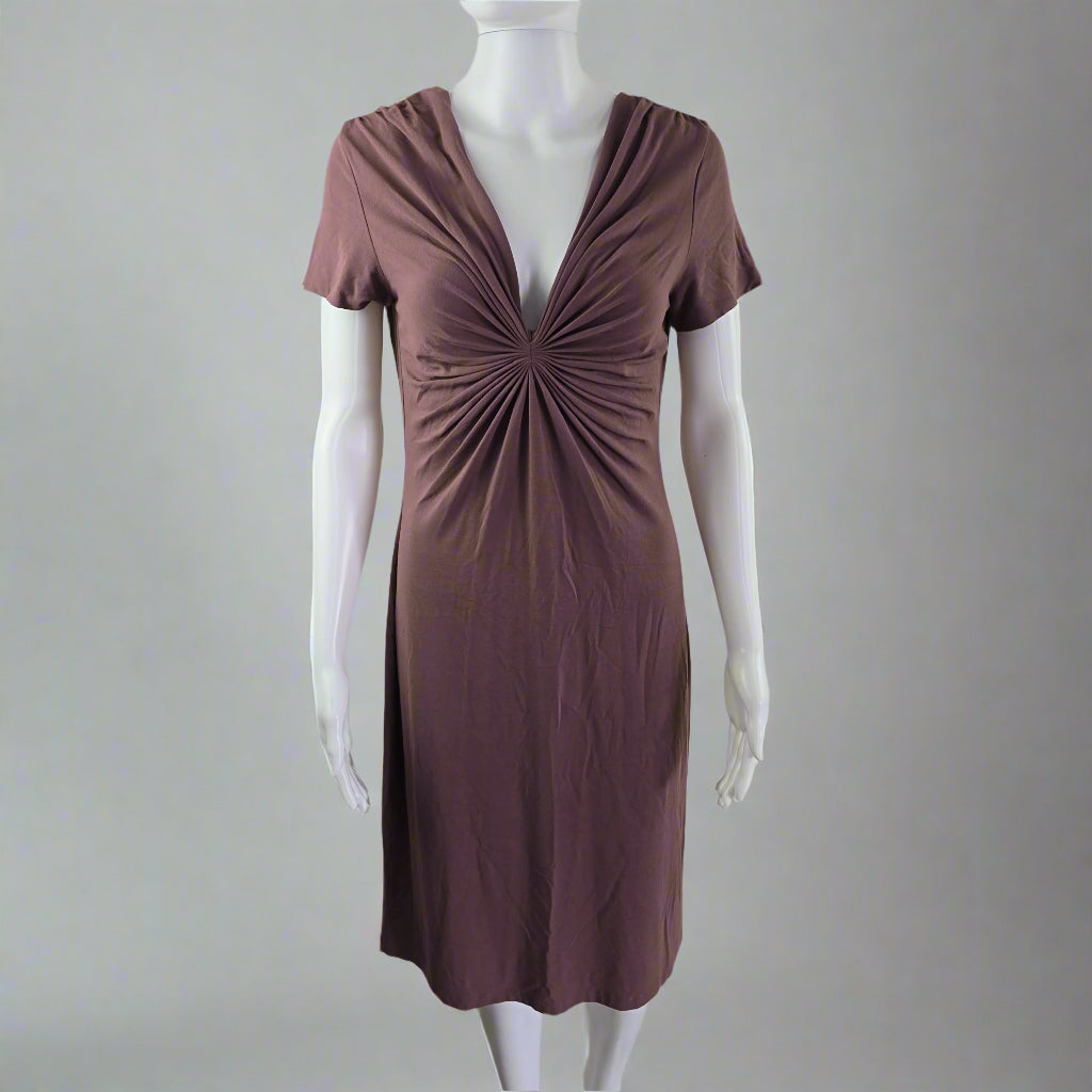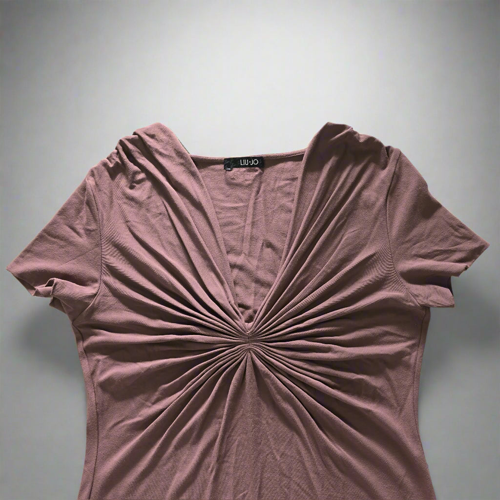 Slip into subtle elegance with this figure-flattering plum-purple LIU•JO dress – a versatile piece that blends comfort and sophistication with ease. Featuring a deeply gathered front neckline that creates soft ruching for a cinched effect, this dress offers understated drama without ever trying too hard.