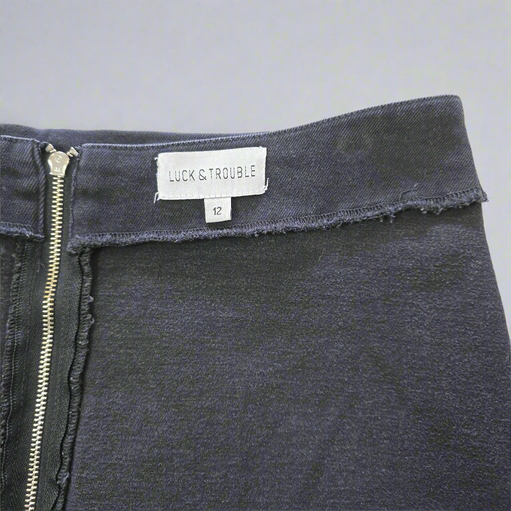 Luck & Trouble Charcoal/Black Denim Skirt – Size AU 12
