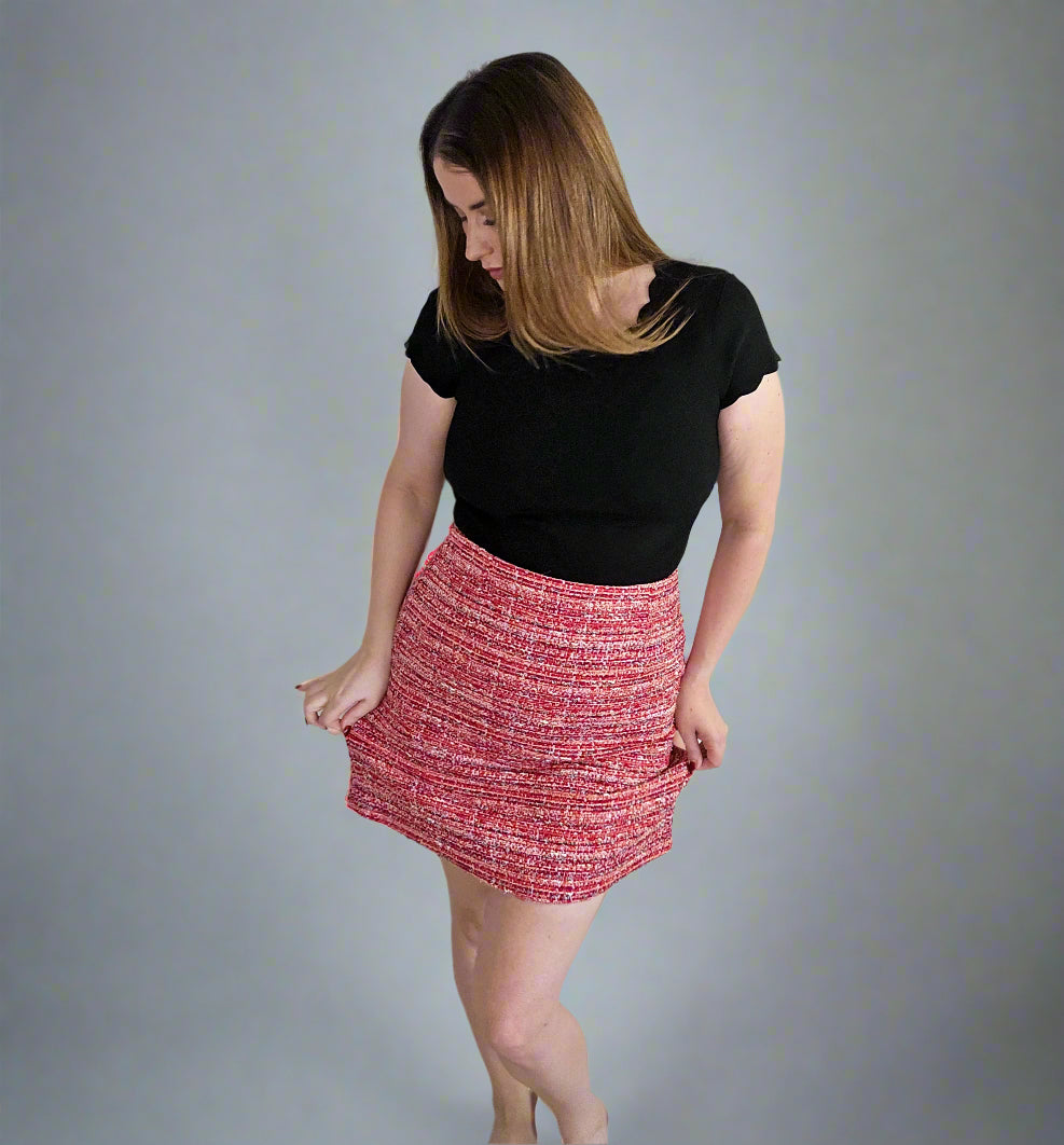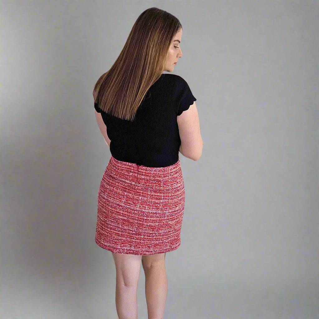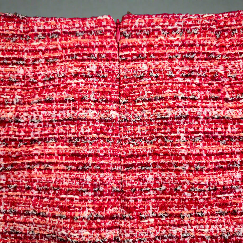 Tweed is celebrated for its unique, rugged woven texture, and the addition of metallic threading makes this skirt a standout piece of elegance and enduring style.