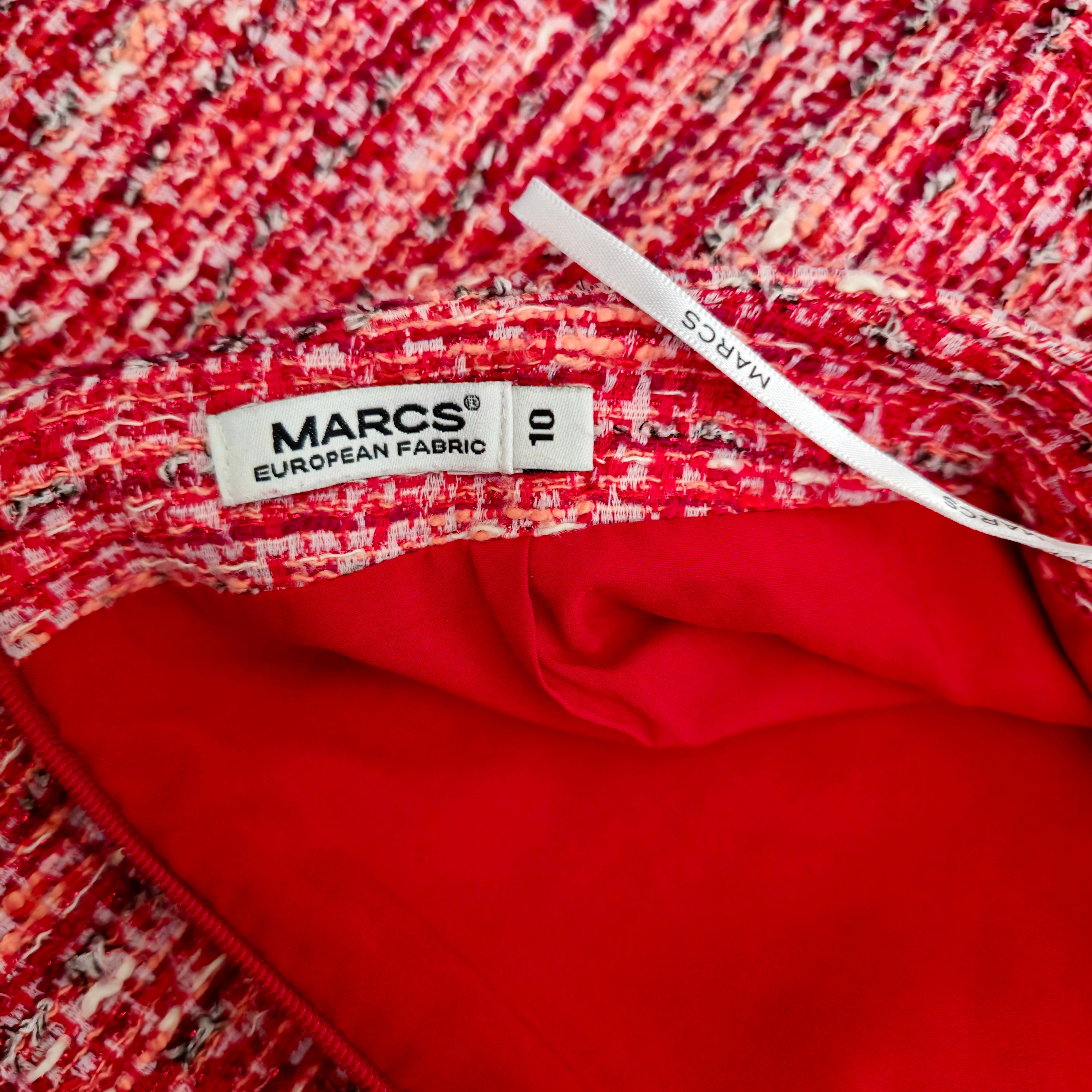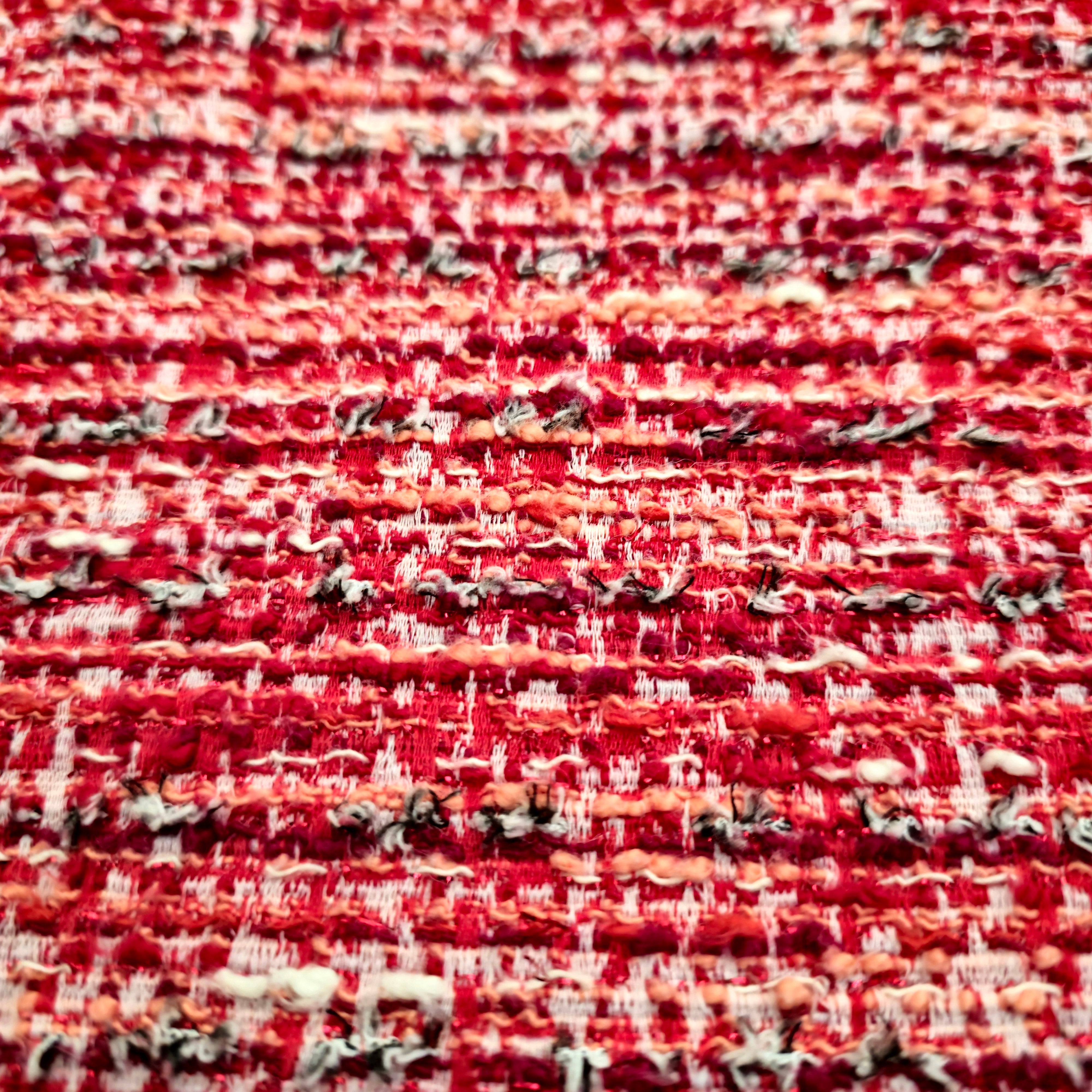 This timeless piece combines classic tweed craftsmanship with a vibrant red hue, perfect for making a bold statement.
