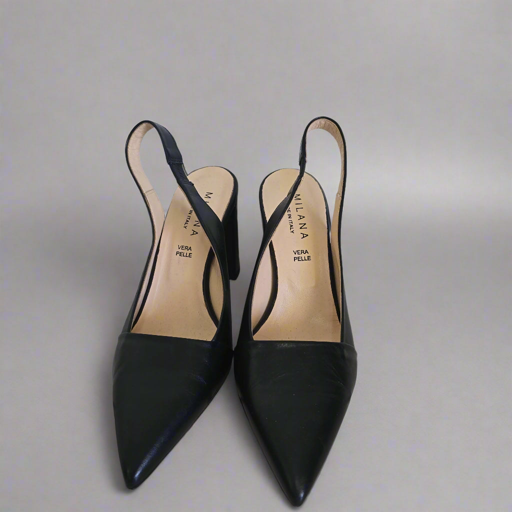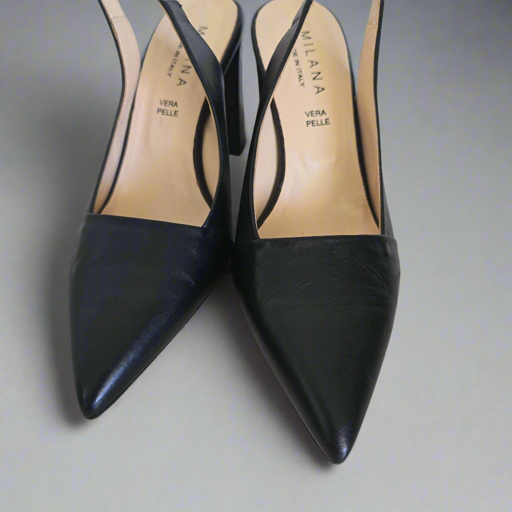 Milana Black Leather Slingback Heels – Elegant & Timeless