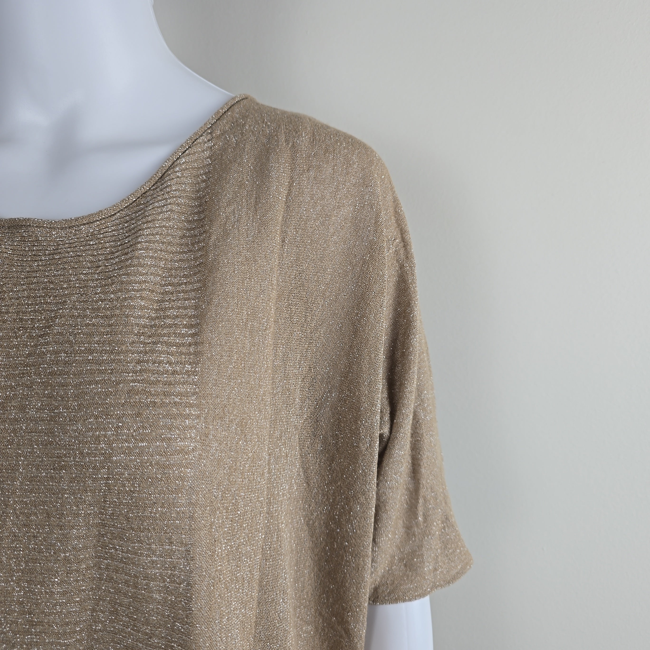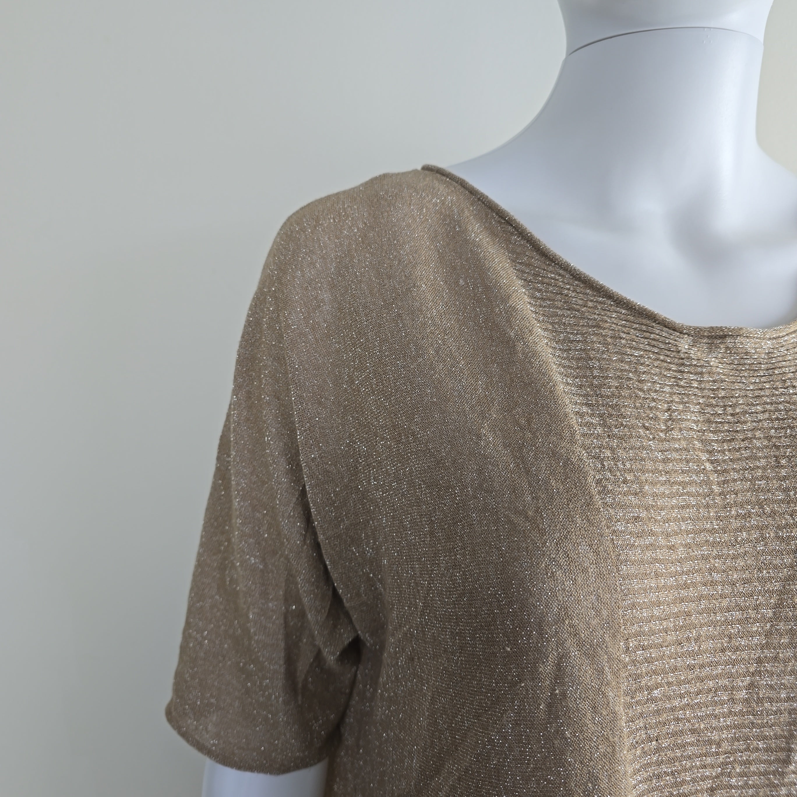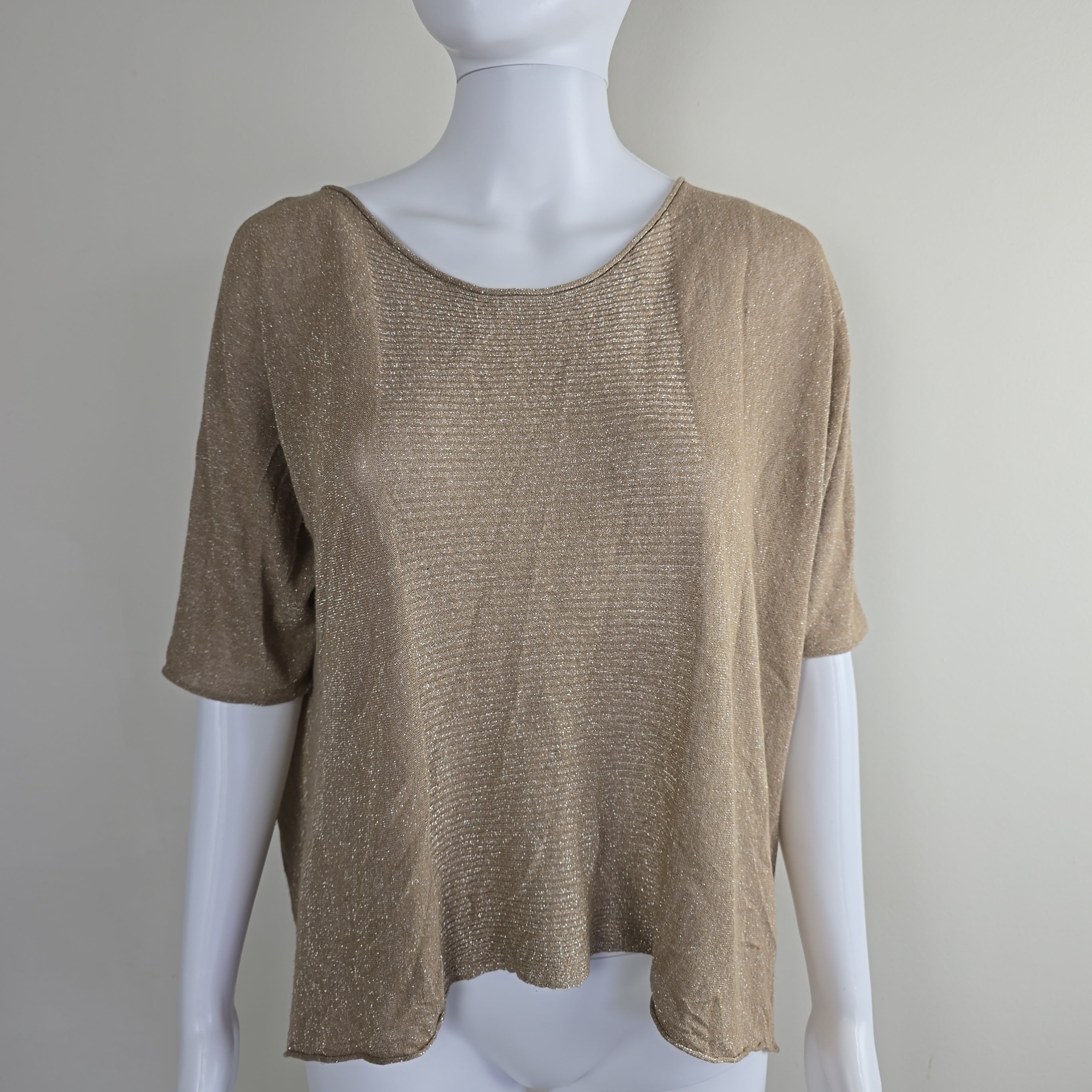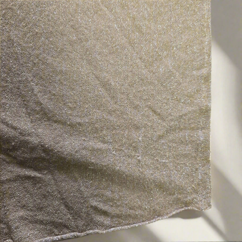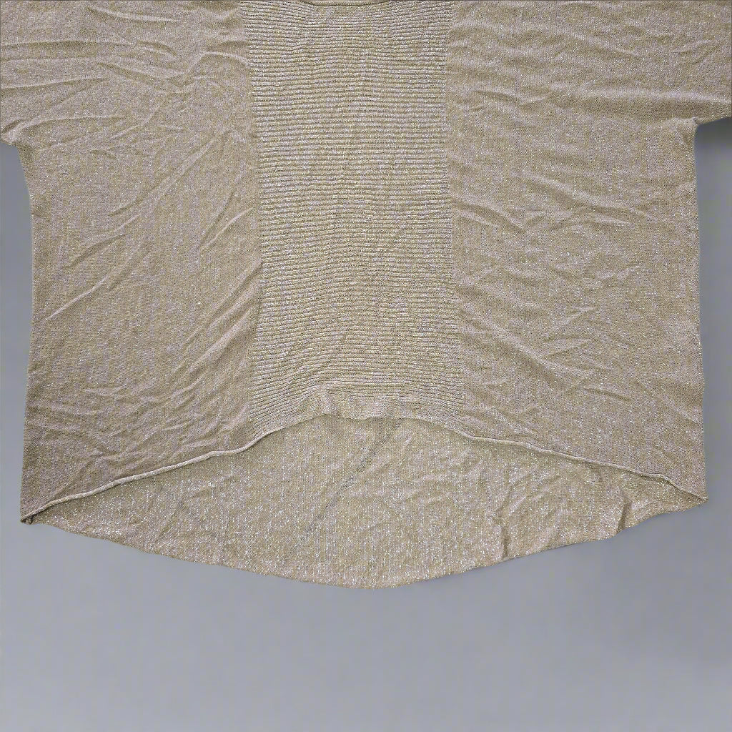 Effortless glamour meets easy layering in this Oroton metallic knit top. With its subtle high-low hem, relaxed silhouette, and sheer shimmer, this top is made for movement and catching the light. Silver metallic threads are woven throughout for that understated Oroton sparkle, and a signature metal badge at the back adds a touch of polish.
