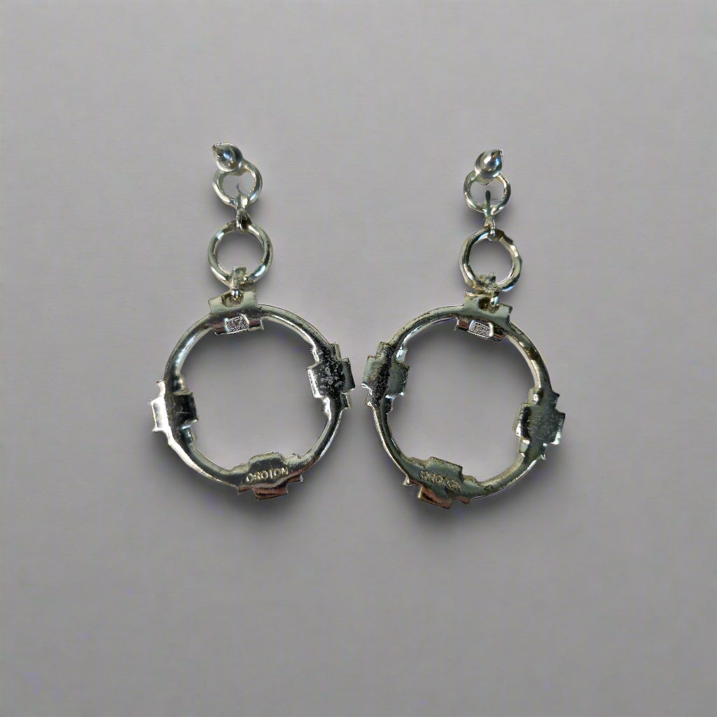 These Oroton Silver Round Drop Earrings are an elegant and timeless accessory that can elevate any outfit. Crafted from high-quality silver, these earrings feature a striking round drop design adorned with sparkling stones for a luxurious look.
