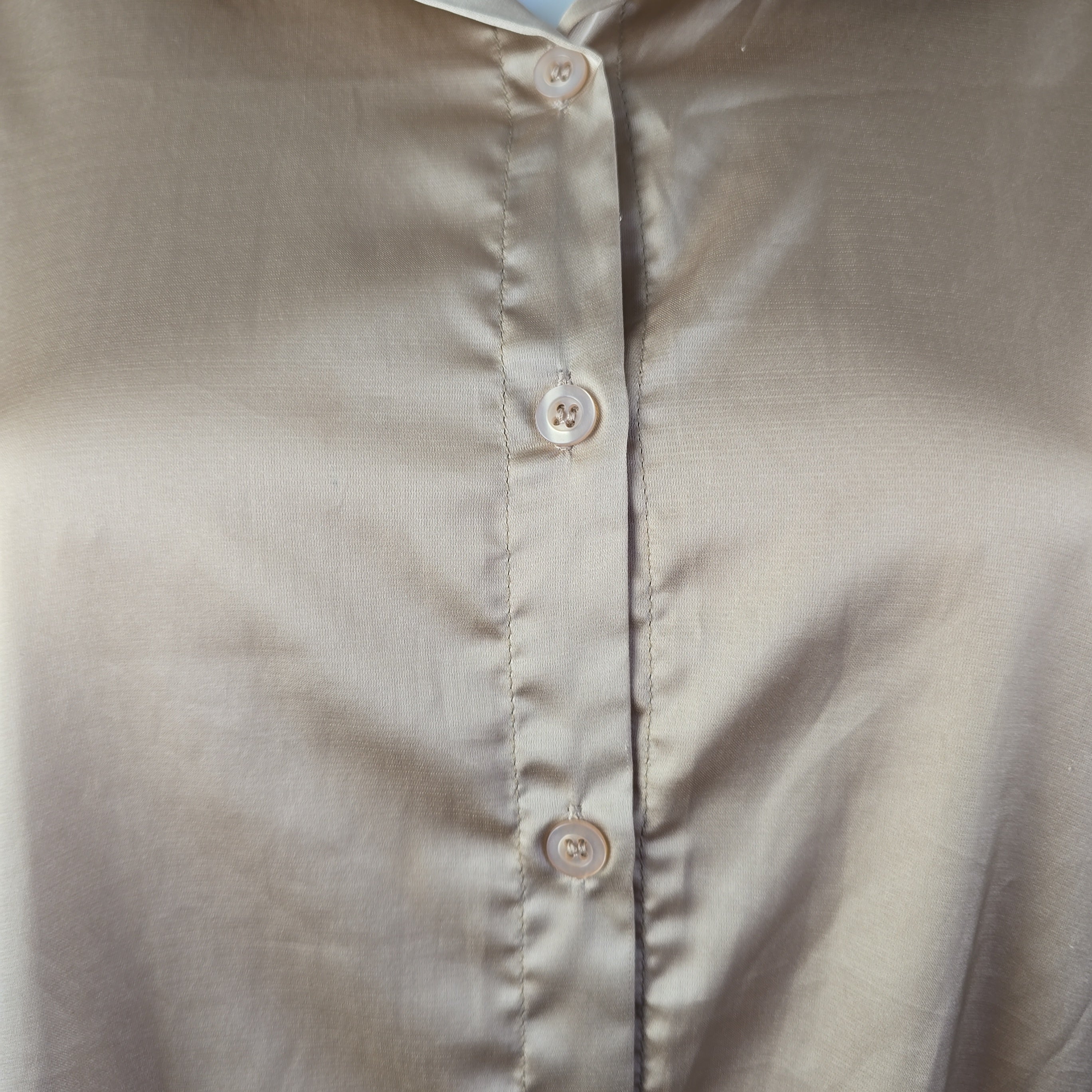 Tags have been removed; however, it feels like a 100% polyester satin fabric — lightweight, soft, and breathable with a natural sheen.