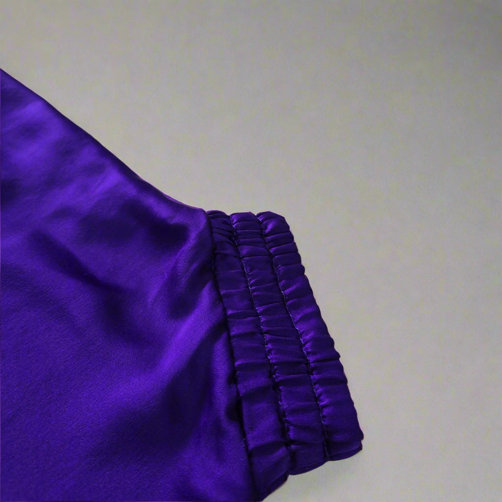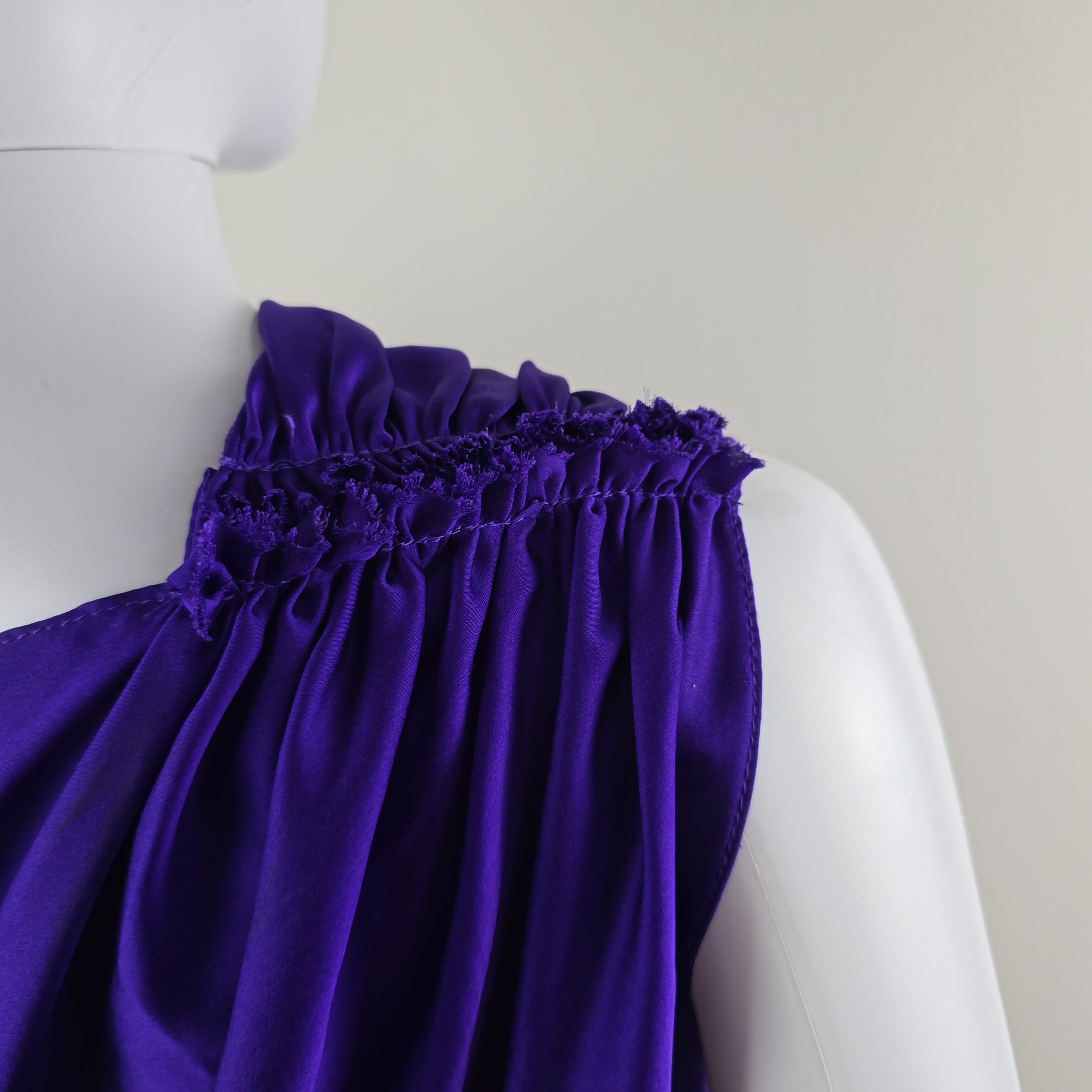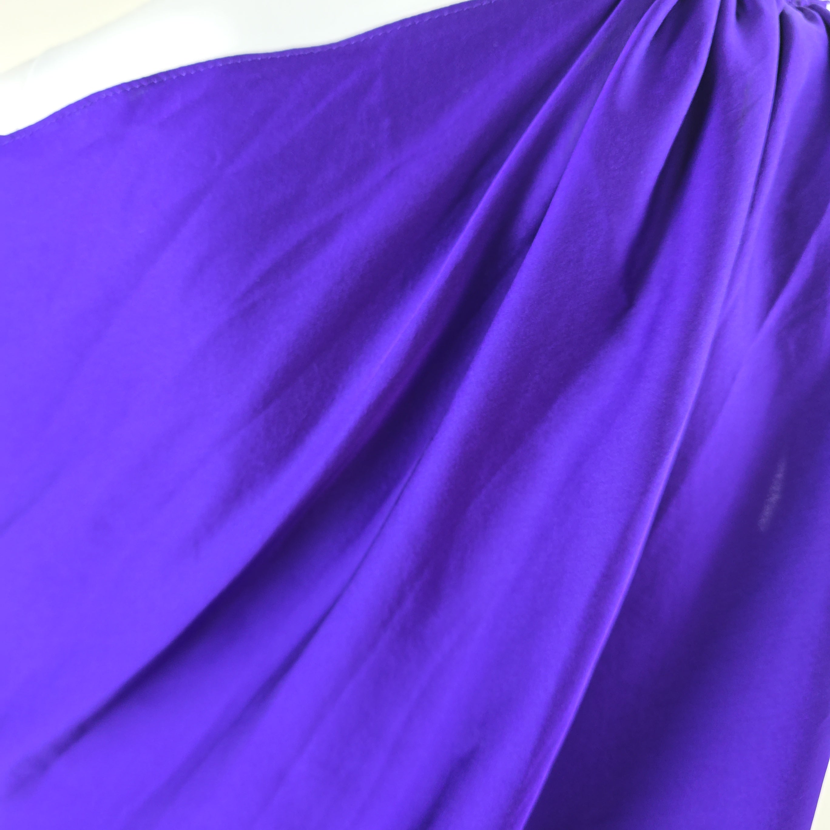 Turn heads with this showstopping Scanlan & Theodore draped silk top in a stunning violet purple hue. Designed in luxurious pure silk, this one-shoulder piece features an elegantly gathered sleeve with internal detailing, offering the perfect balance of bold structure and fluid drape.