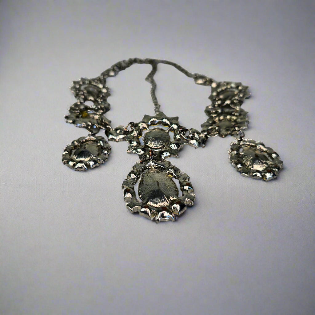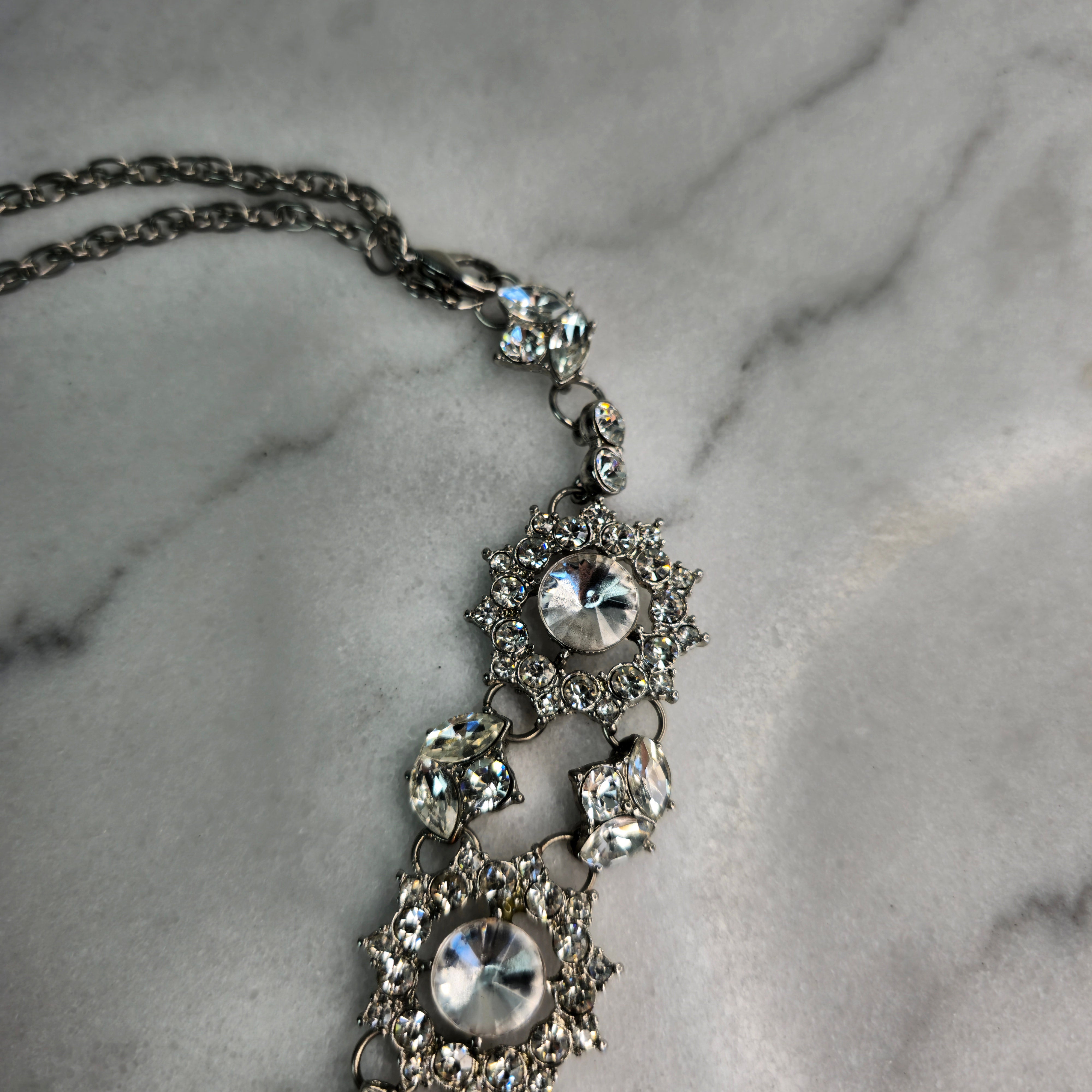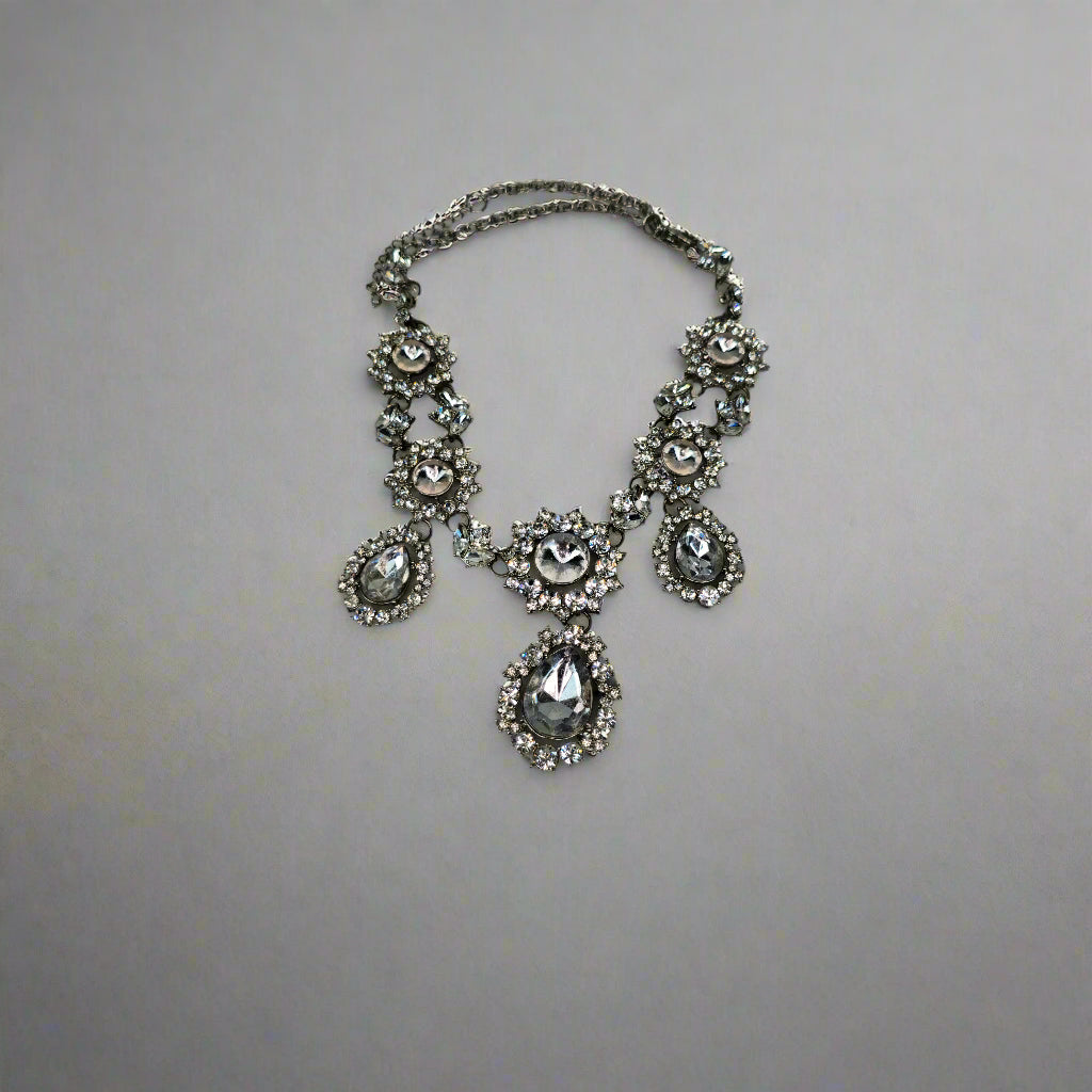 This necklace is the ultimate statement piece—whether paired with an elegant dress for a night out or styled with a simple top to add some edge, it brings instant glamour and sophistication. The sparkling crystals give it a vintage-inspired, regal look, making it perfect for formal occasions, weddings, or adding a touch of luxury to your outfit.
