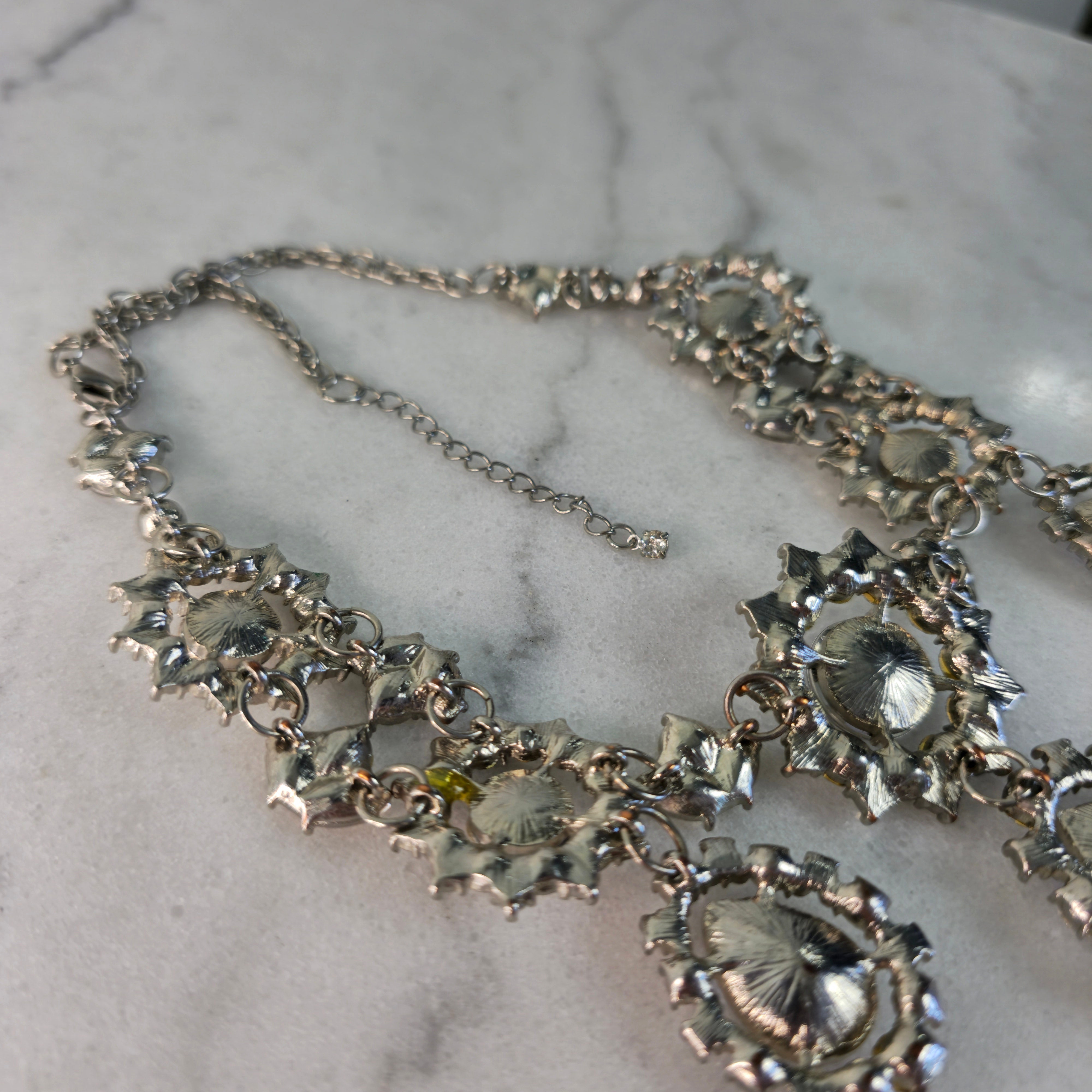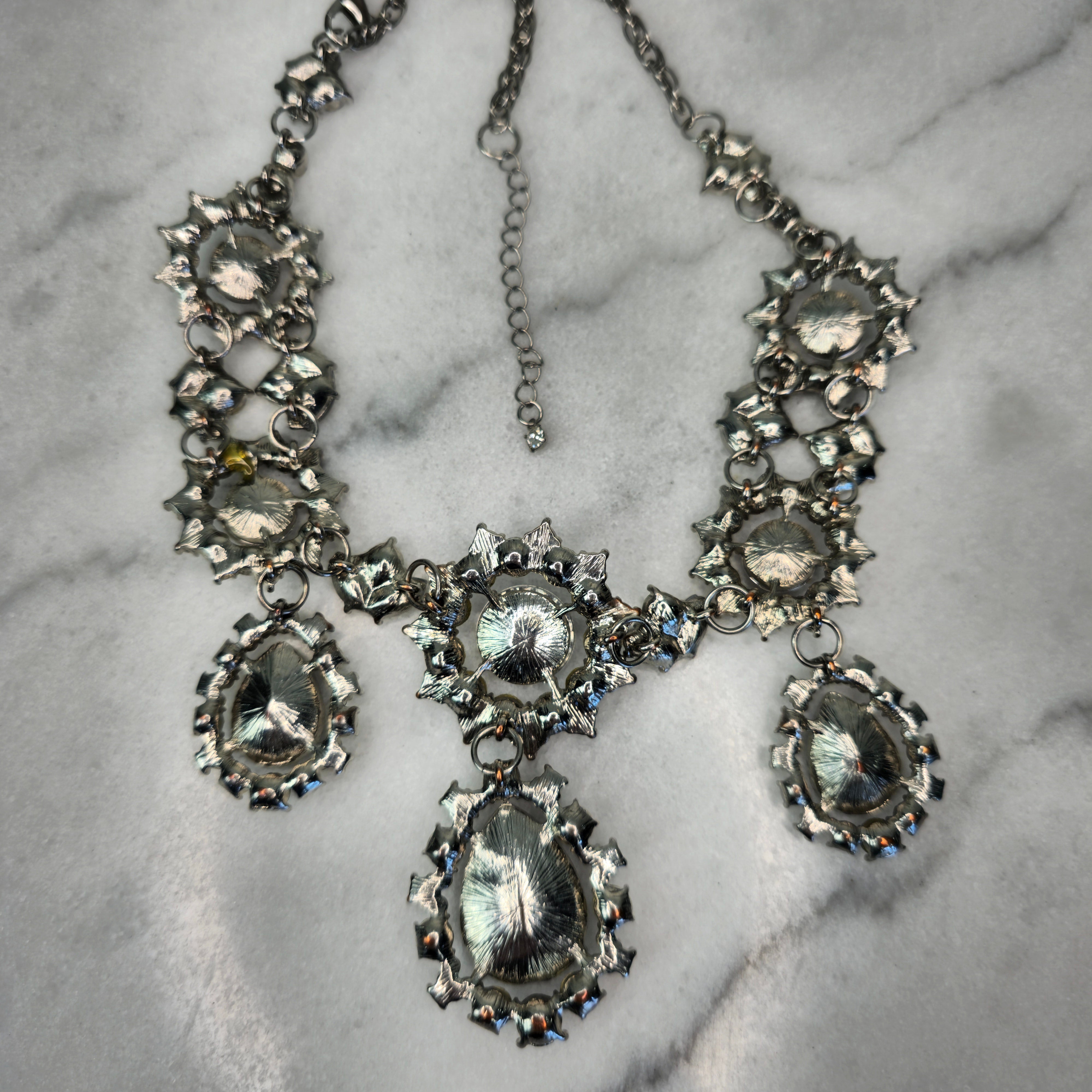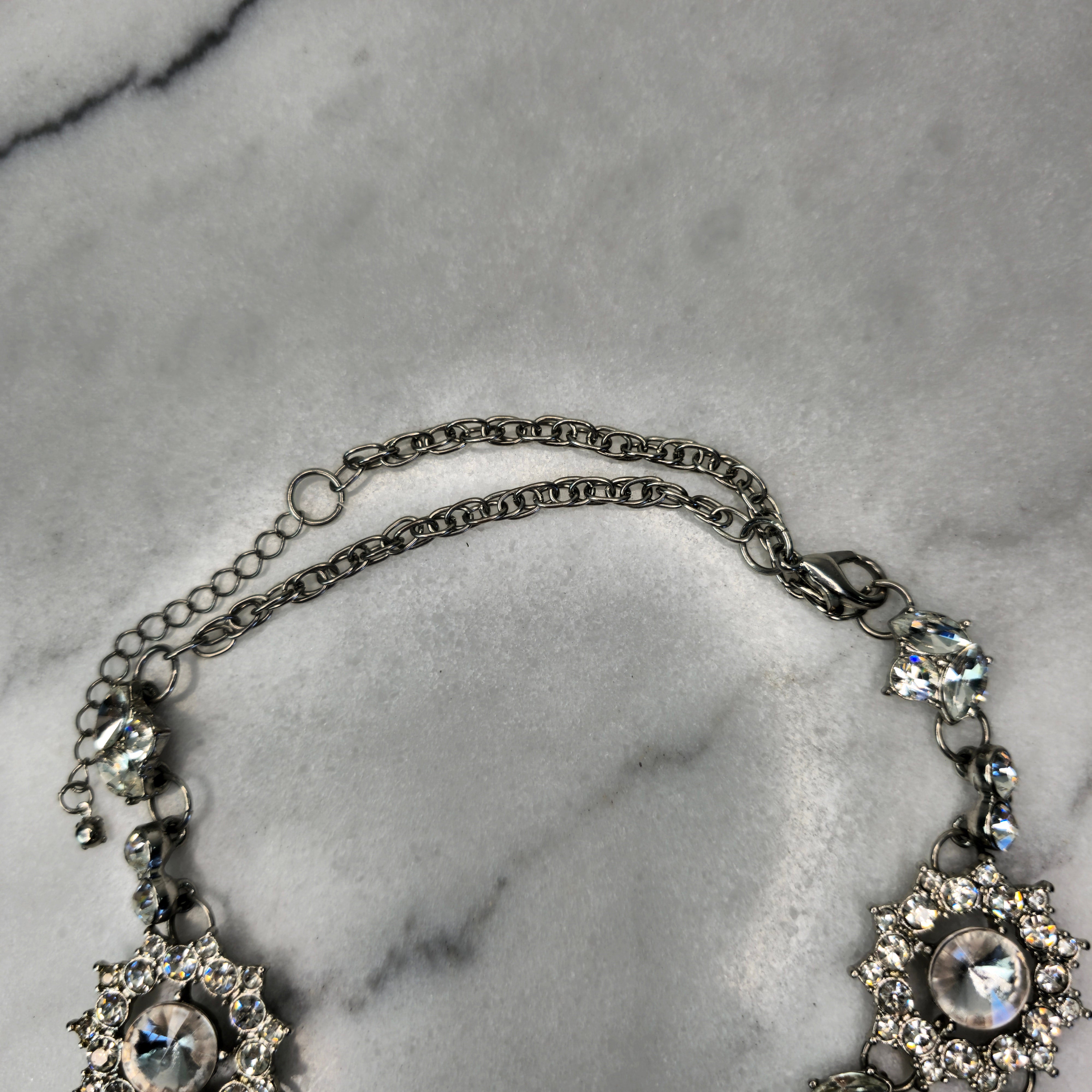 This necklace is the ultimate statement piece—whether paired with an elegant dress for a night out or styled with a simple top to add some edge, it brings instant glamour and sophistication. The sparkling crystals give it a vintage-inspired, regal look, making it perfect for formal occasions, weddings, or adding a touch of luxury to your outfit.
