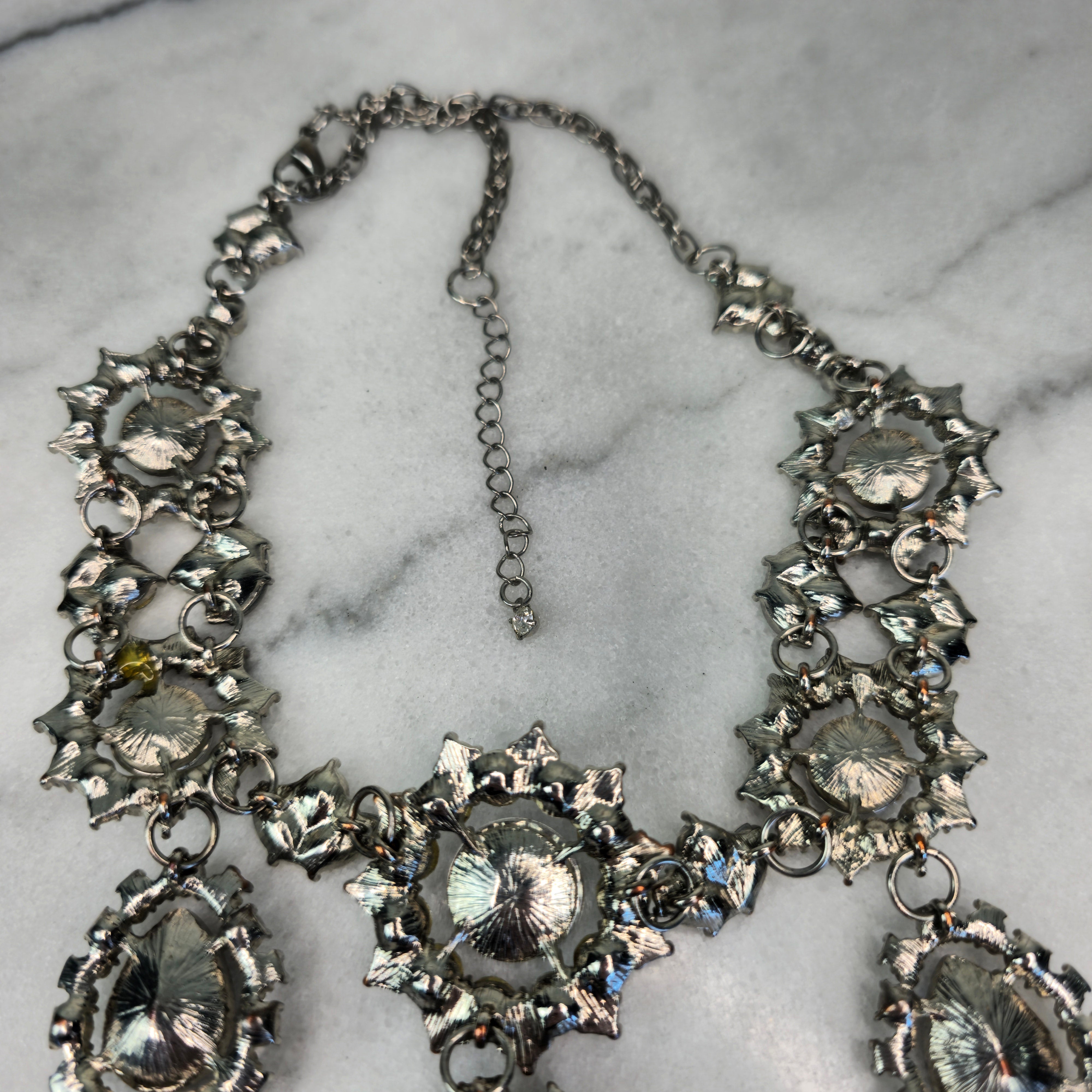 Very minor rubbing of the silver metal towards the back of the necklace, but not noticeable when worn.