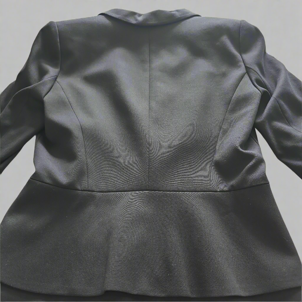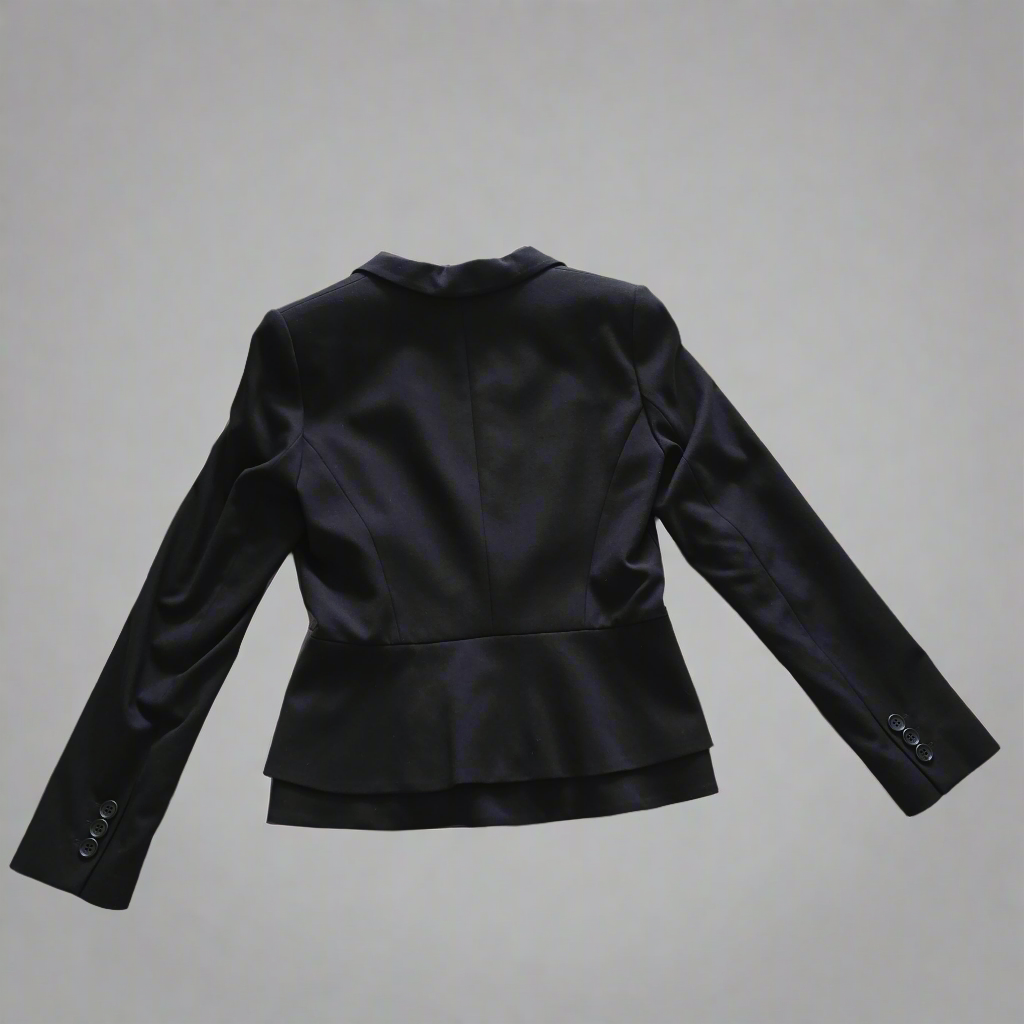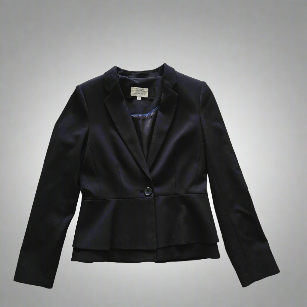 Introducing our Veronika Maine Black Cropped Blazer! Expertly crafted with precision tailoring, this blazer softly nips in at the waist, flattering any body type with its silhouette. The modern sophistication of the notched collar and lapel is beautifully balanced by the neat, padded shoulders, offering a timeless yet contemporary look. With its classic single-breasted closure, this blazer exudes elegance with a twist. The refined buttoned cuffs and durable lining ensure both style and comfort. What makes this piece truly stand out is its double-layered bottom, adding a unique touch to the classic silhouette. From day to night, this versatile blazer effortlessly elevates any ensemble!
